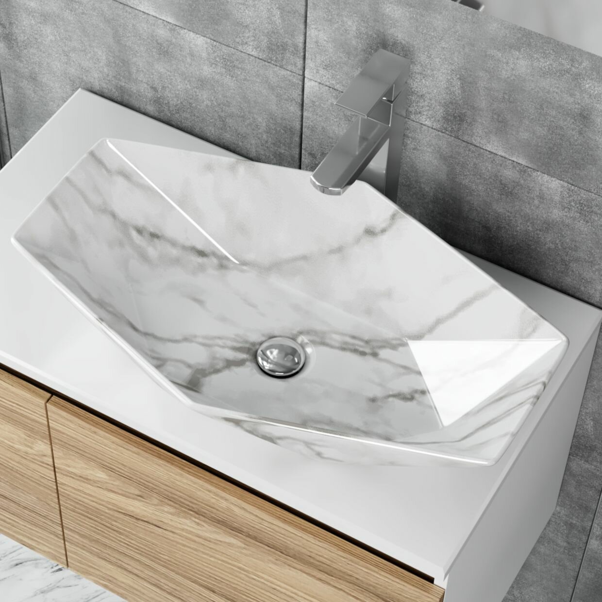 Раковина прямоугольная накладная BAU Cerama 48х37, с отверстием под смеситель, светлый мрамор