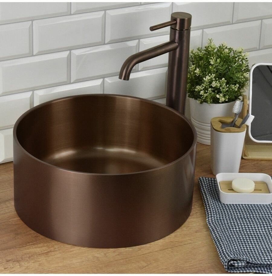 Мойка накладная, круглая, эксклюзив, медь, d = 38 см толщина 1,2 мм, глубина 160 мм, из нержавеющей стали