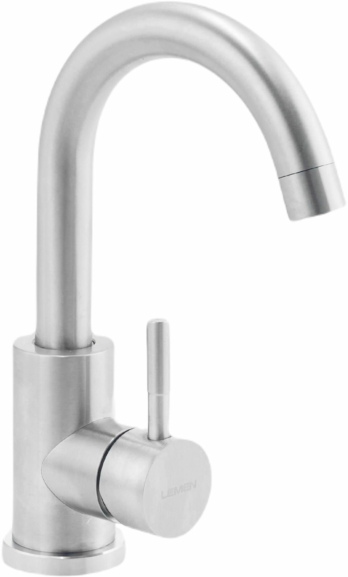 Смеситель для раковины, однорычажный, с поворотным изливом, Lemen, нержавеющая сталь, серый сатин матовый интересное: