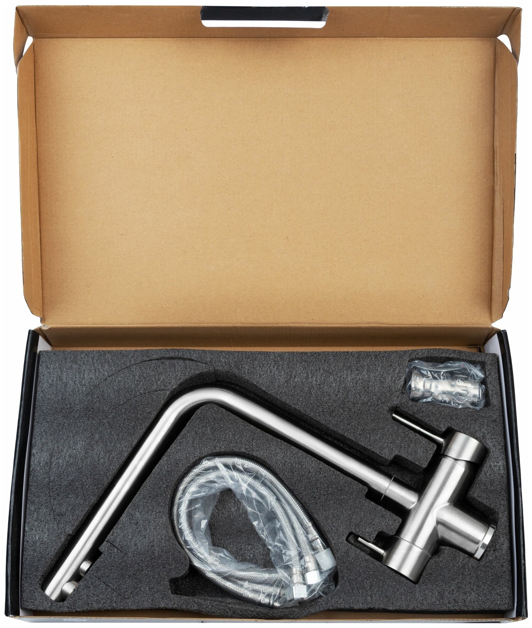 Смеситель для кухни с подключением под фильтр для питьевой воды, высокий поворотный, нержавеющая сталь, сатиновый интересное: