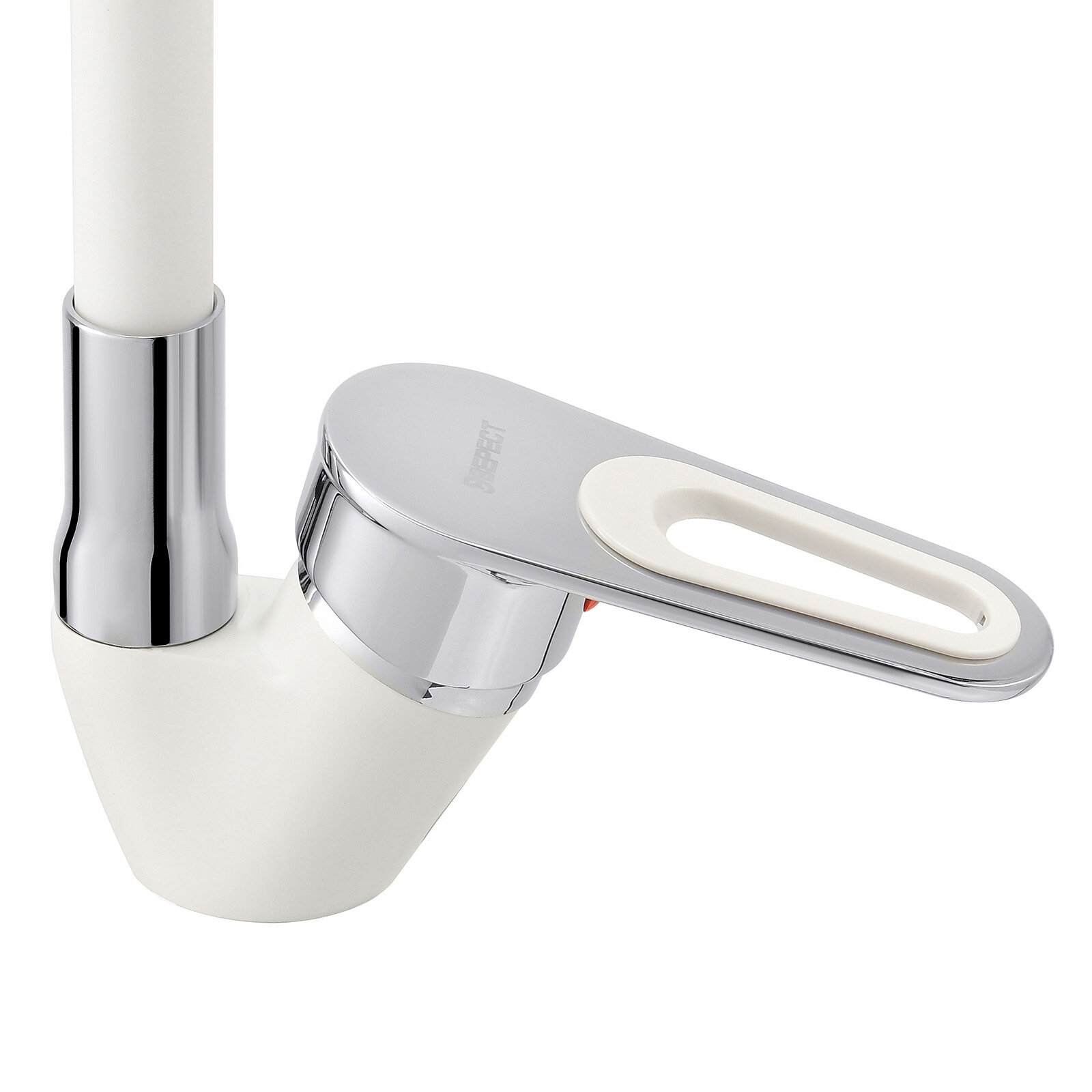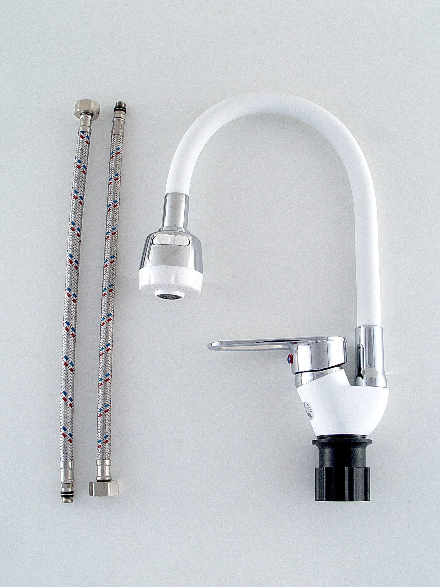 Эверест Смеситель для кухни/мойки/раковины с высоким гибким изливом, белый