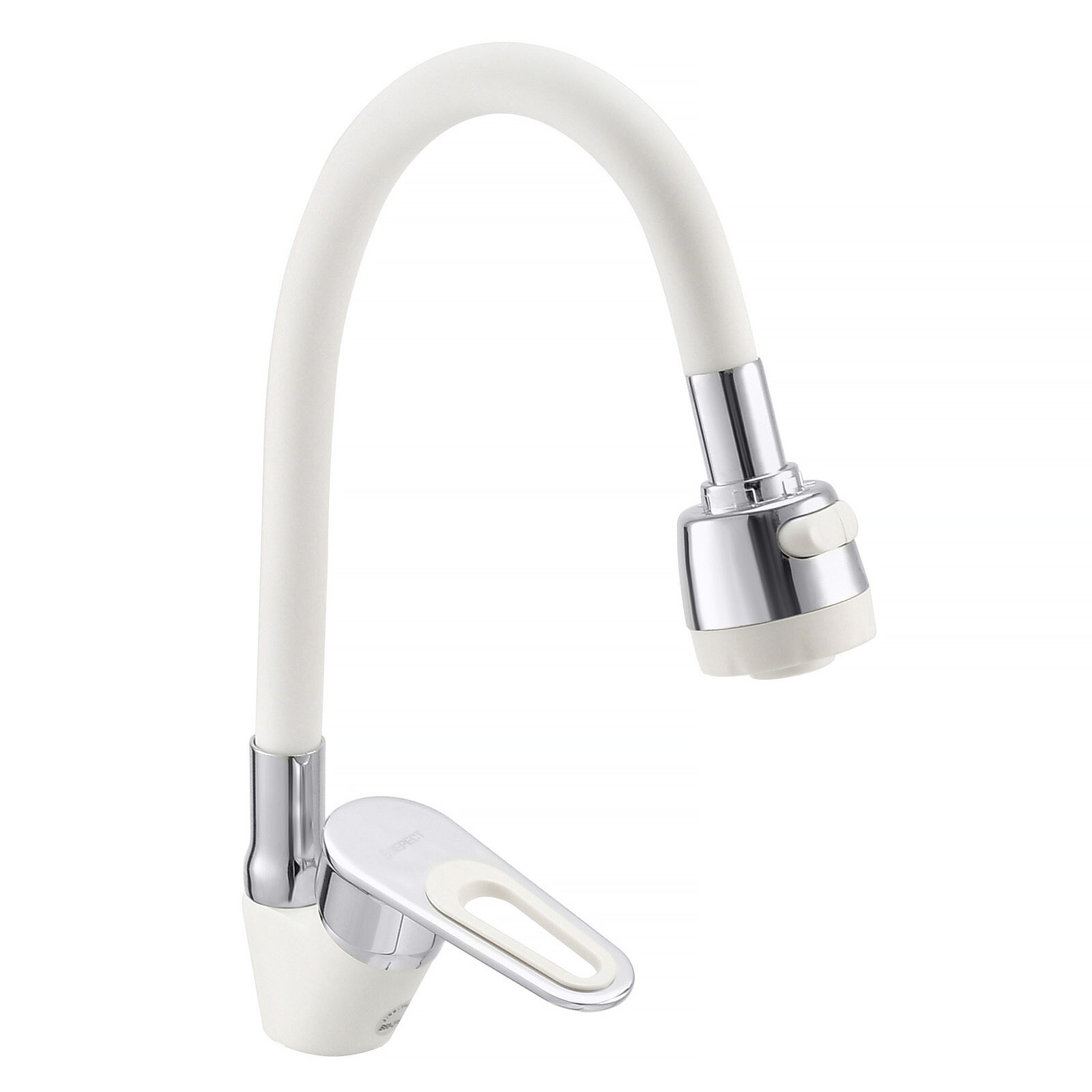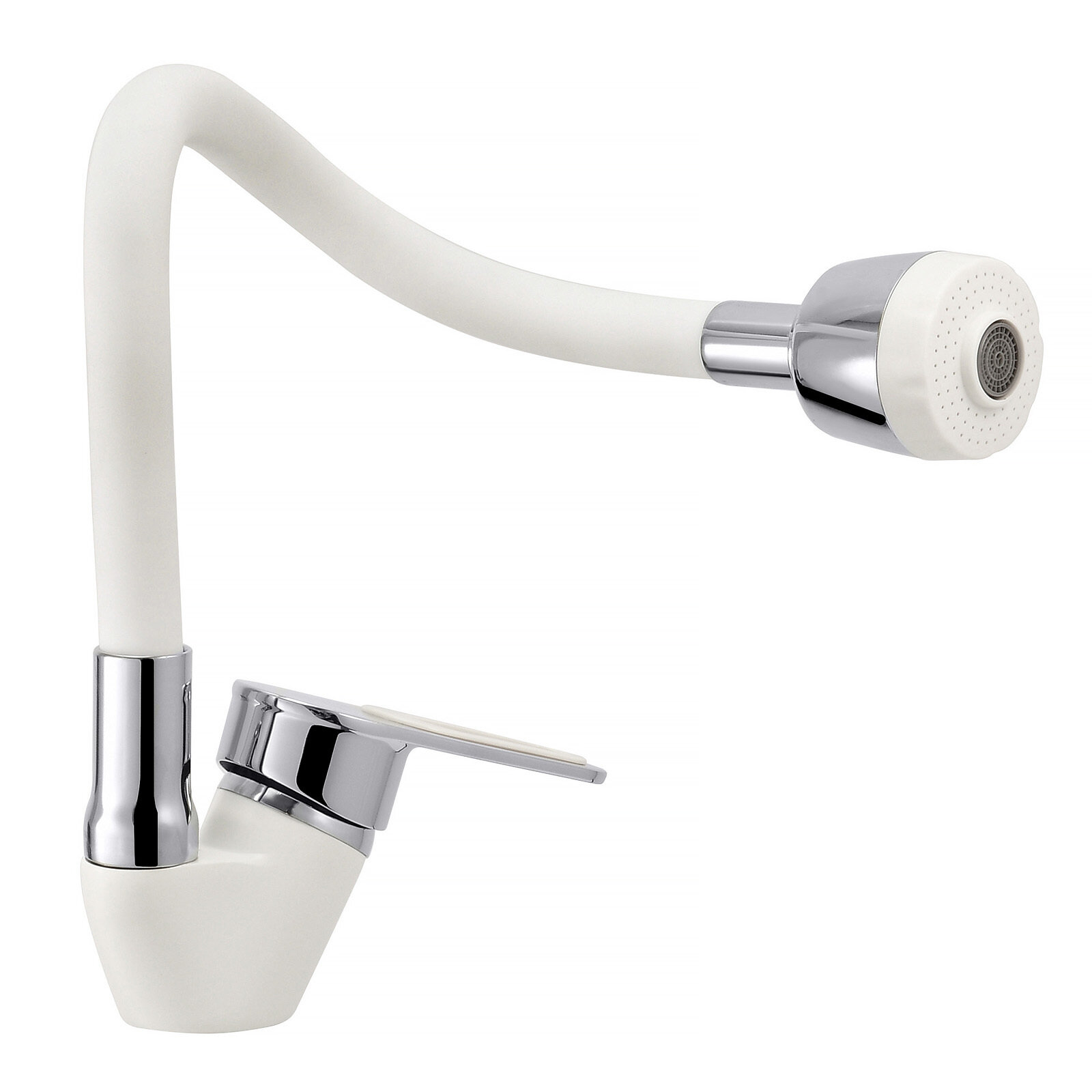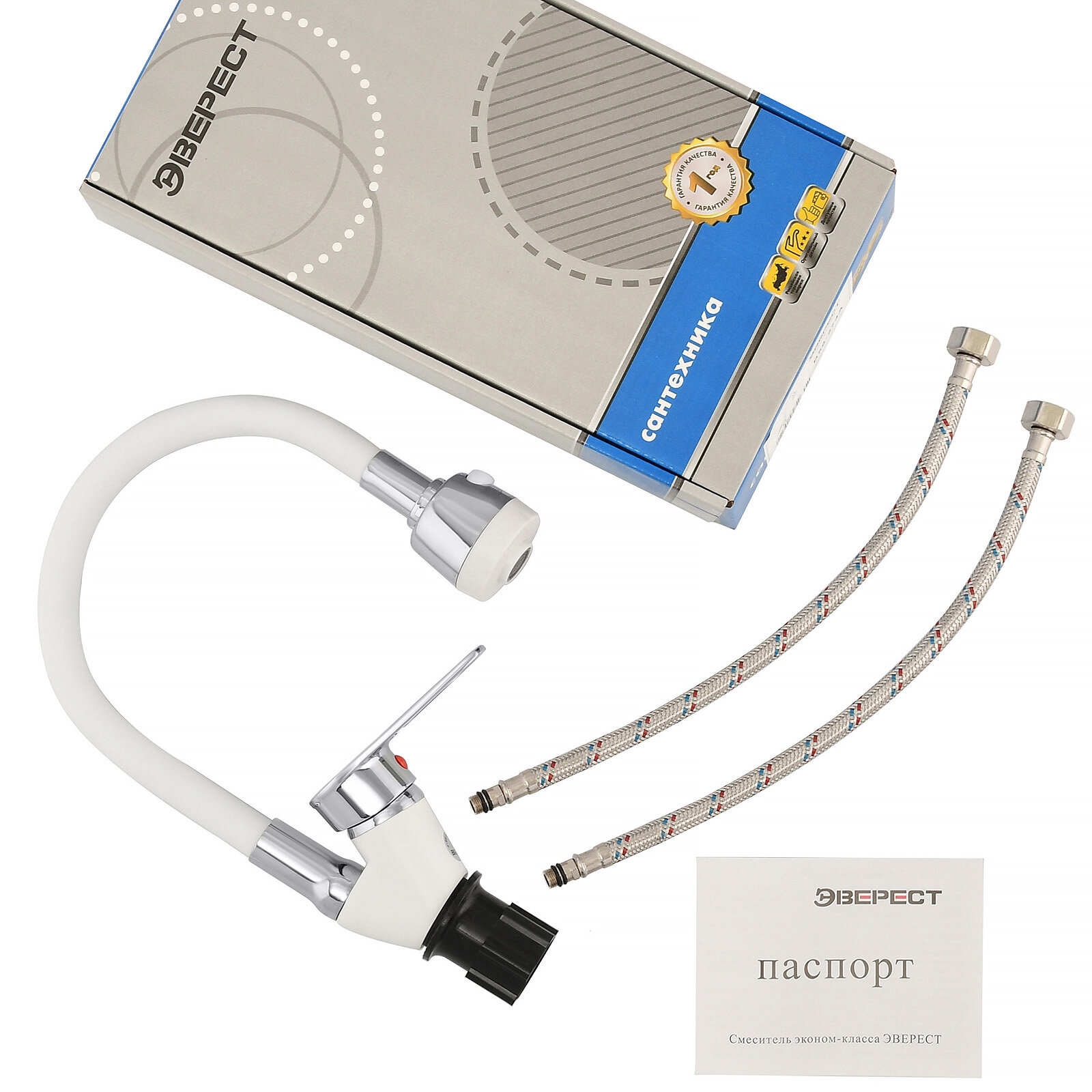 Купить Смеситель для кухни Эверест B58-274A с гибким изливом, картридж 35 мм, белый, крепление гайка
