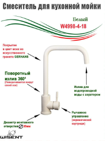 Смеситель для кухни (белый) WISENT W4998-4-18