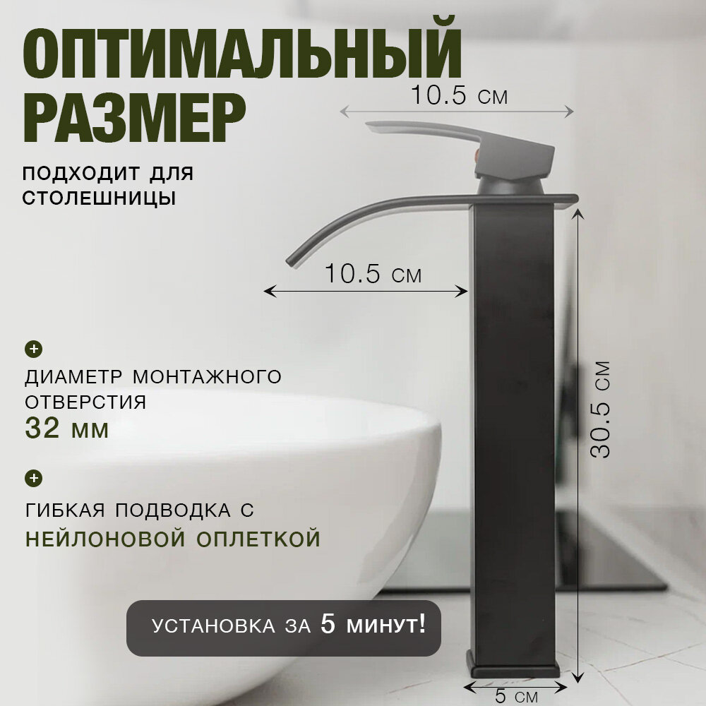 Смеситель для кухни, ванной комнаты U_Project, кран мойка однорычажный для накладной раковины с каскадным изливом-водопадом, черный матовый интересное: