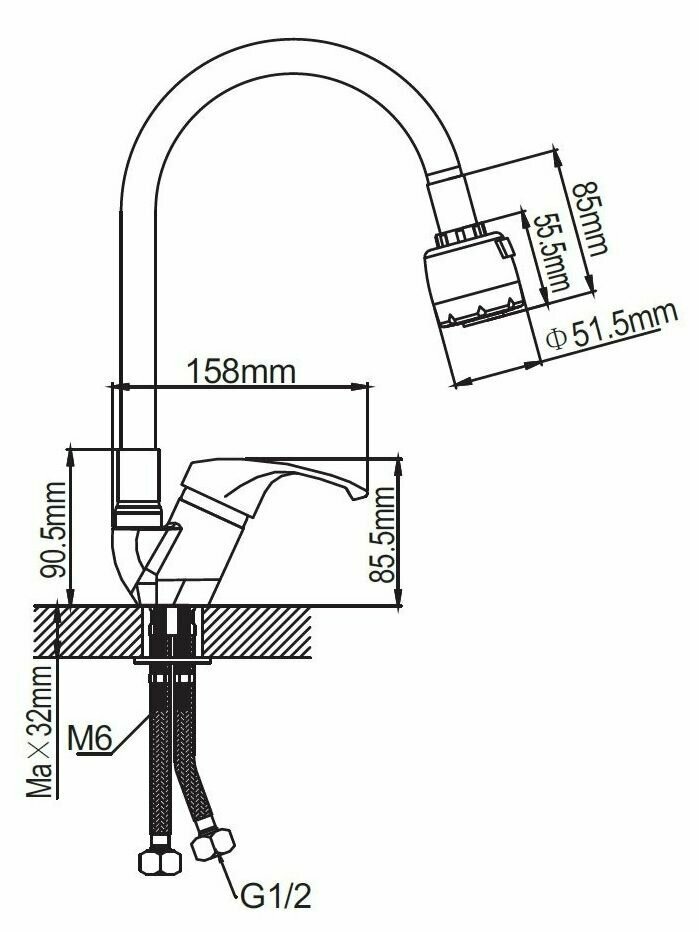 | Тип излива | гибкий / поворотный |