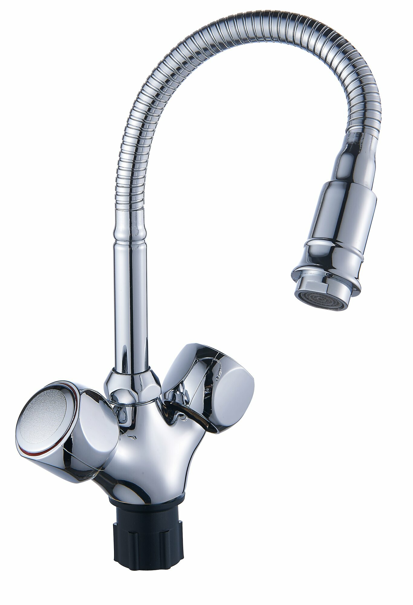 Смеситель на кухню Эверест B58-214M с гибким изливом, без подводки, картридж 35 мм, хром, крепление шпилька