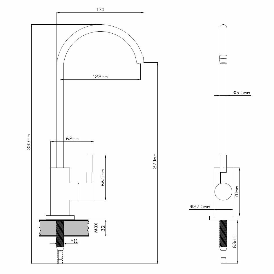 Кран на одну воду Potato P0042S высокий излив, керамическая кран-букса, нержавейка, крепление гайка