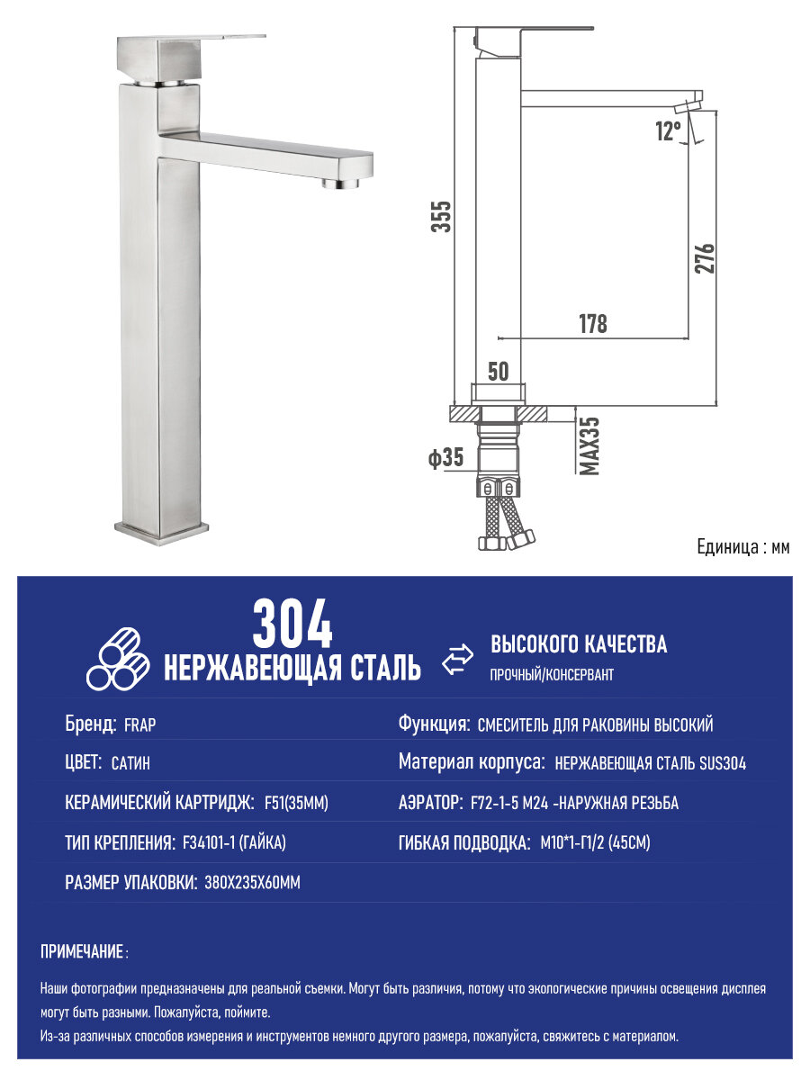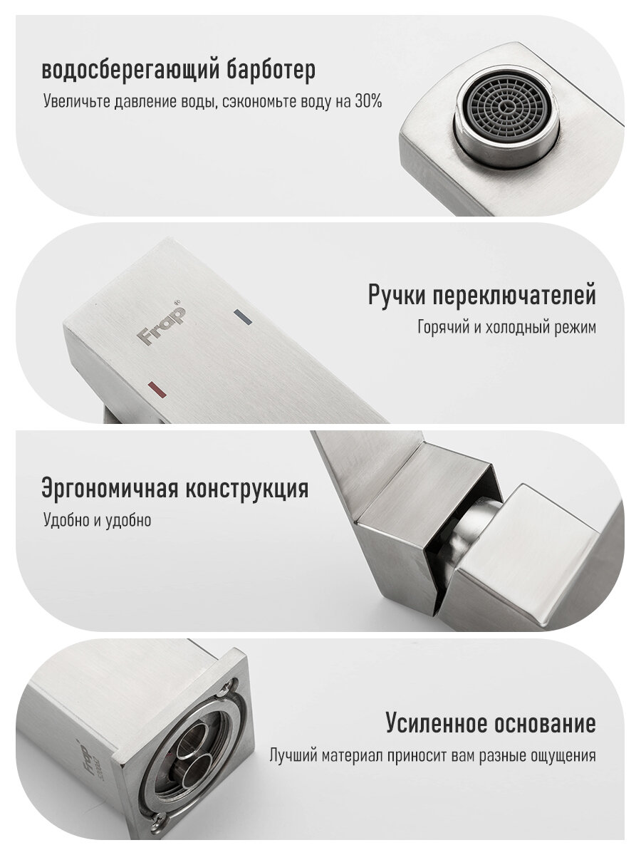 Смеситель для раковины (умывальника) Frap F10802-2 сатин нержавеющая сталь интересное: