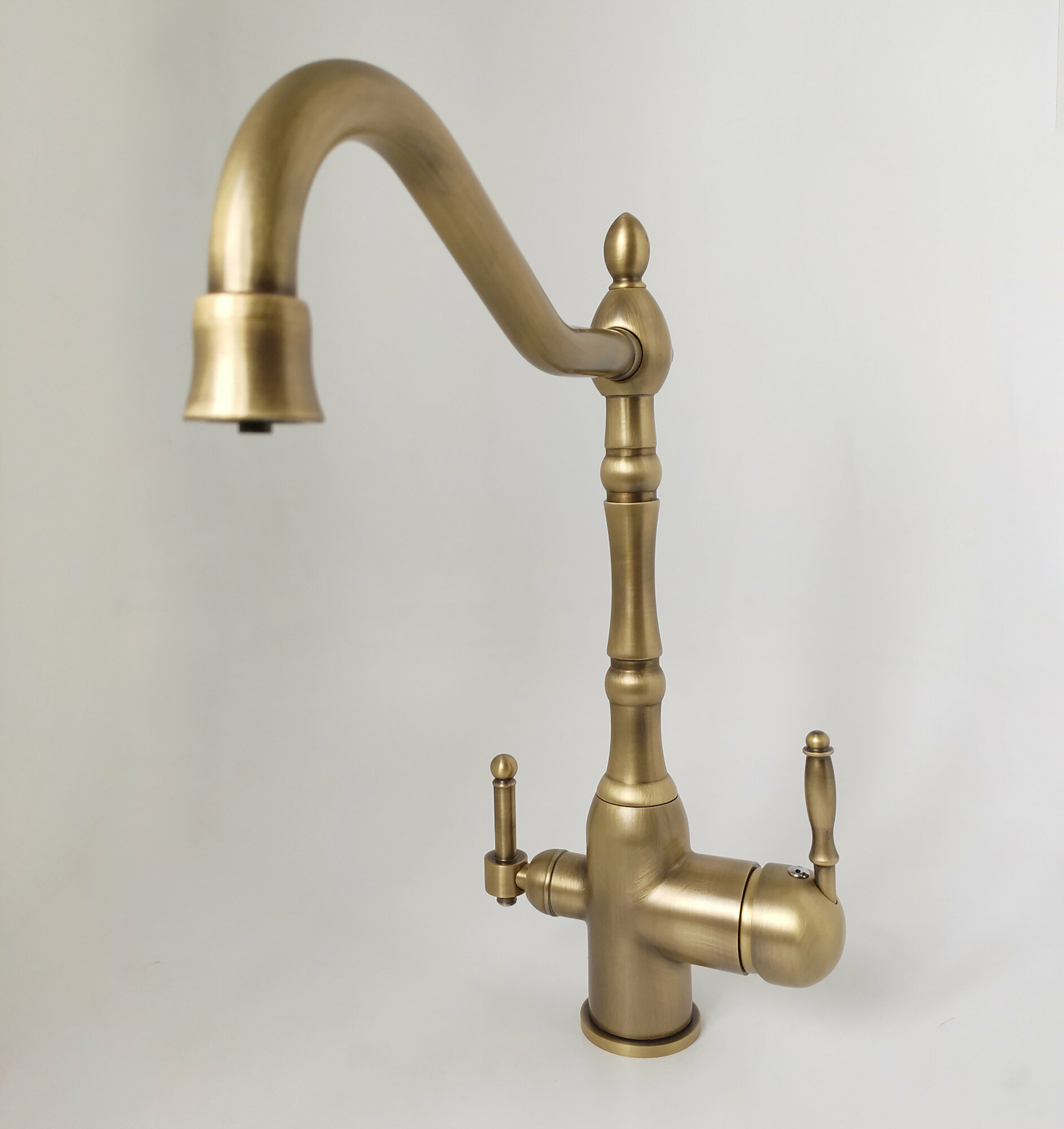 Смеситель для кухни, ретро, высокий поворотный, латунь, бронза золото интересное: