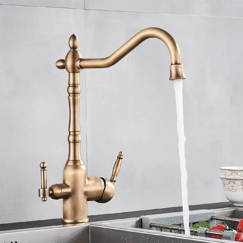 Купить Смеситель для кухни, ретро, высокий поворотный, латунь, бронза золото