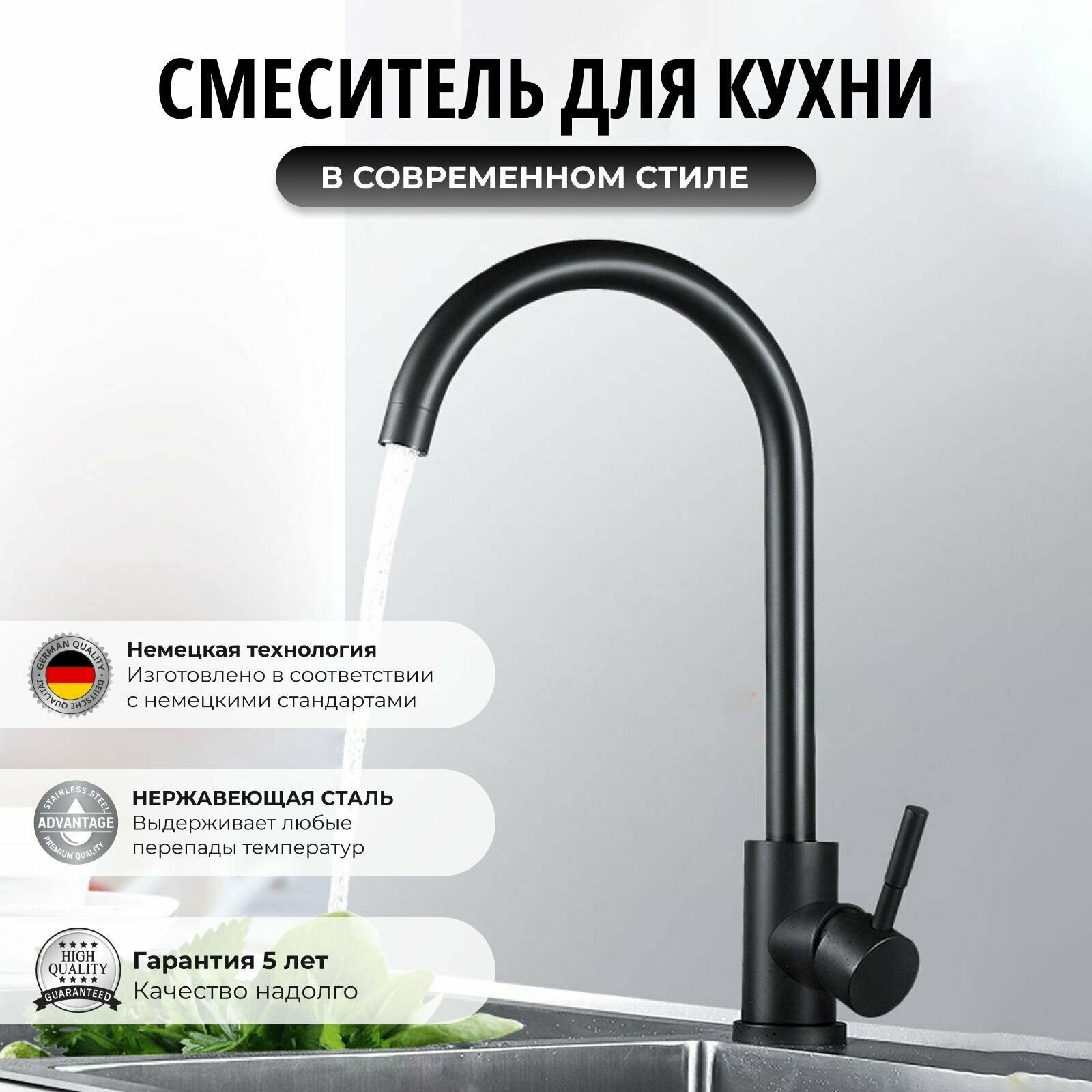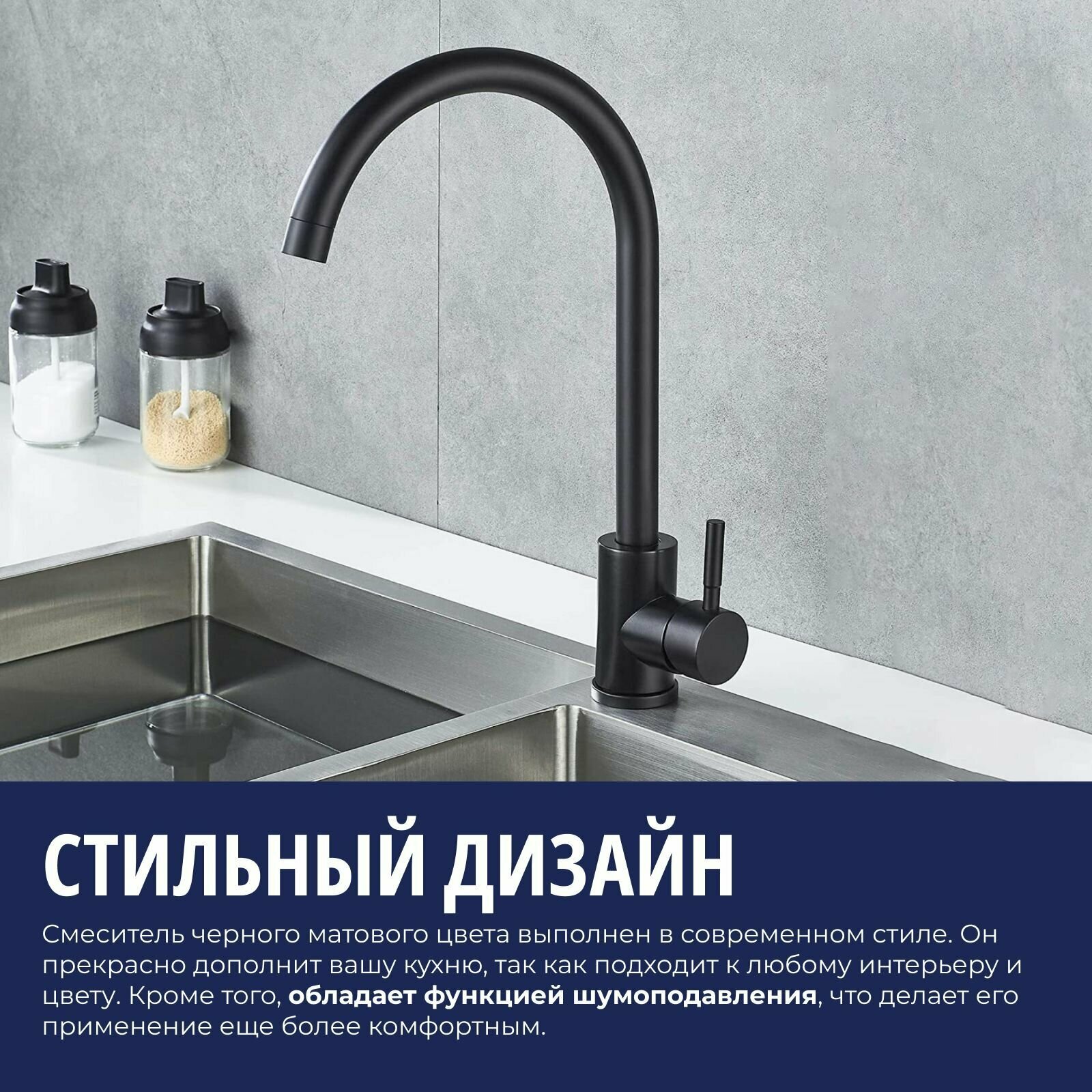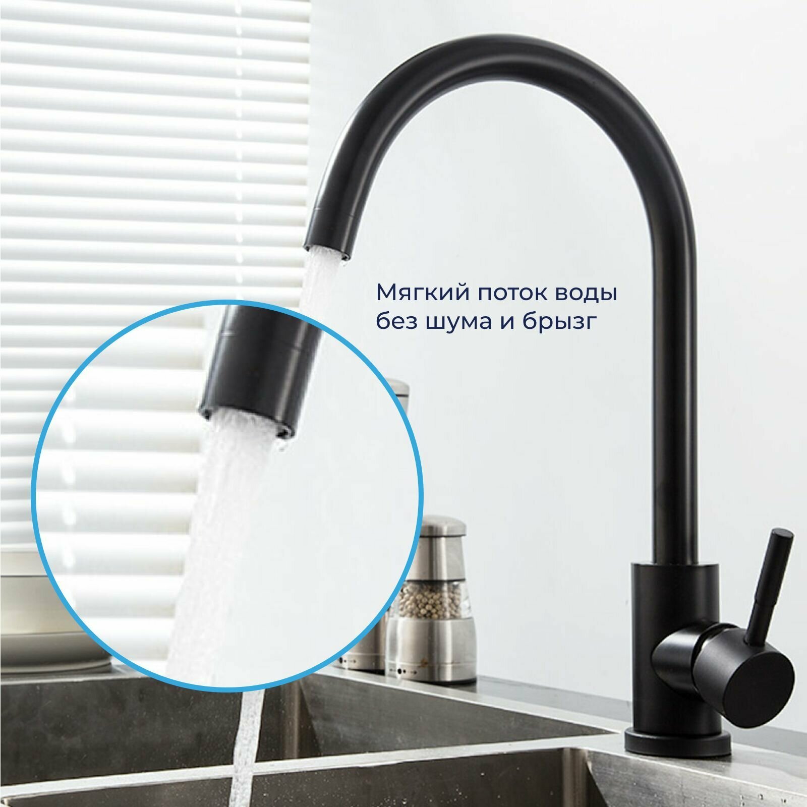 СохранитьСмеситель для кухни черный/ Кухонный смеситель/ Смеситель для мойки/ С поворотным изливом/ Нержавеющая сталь интересное: