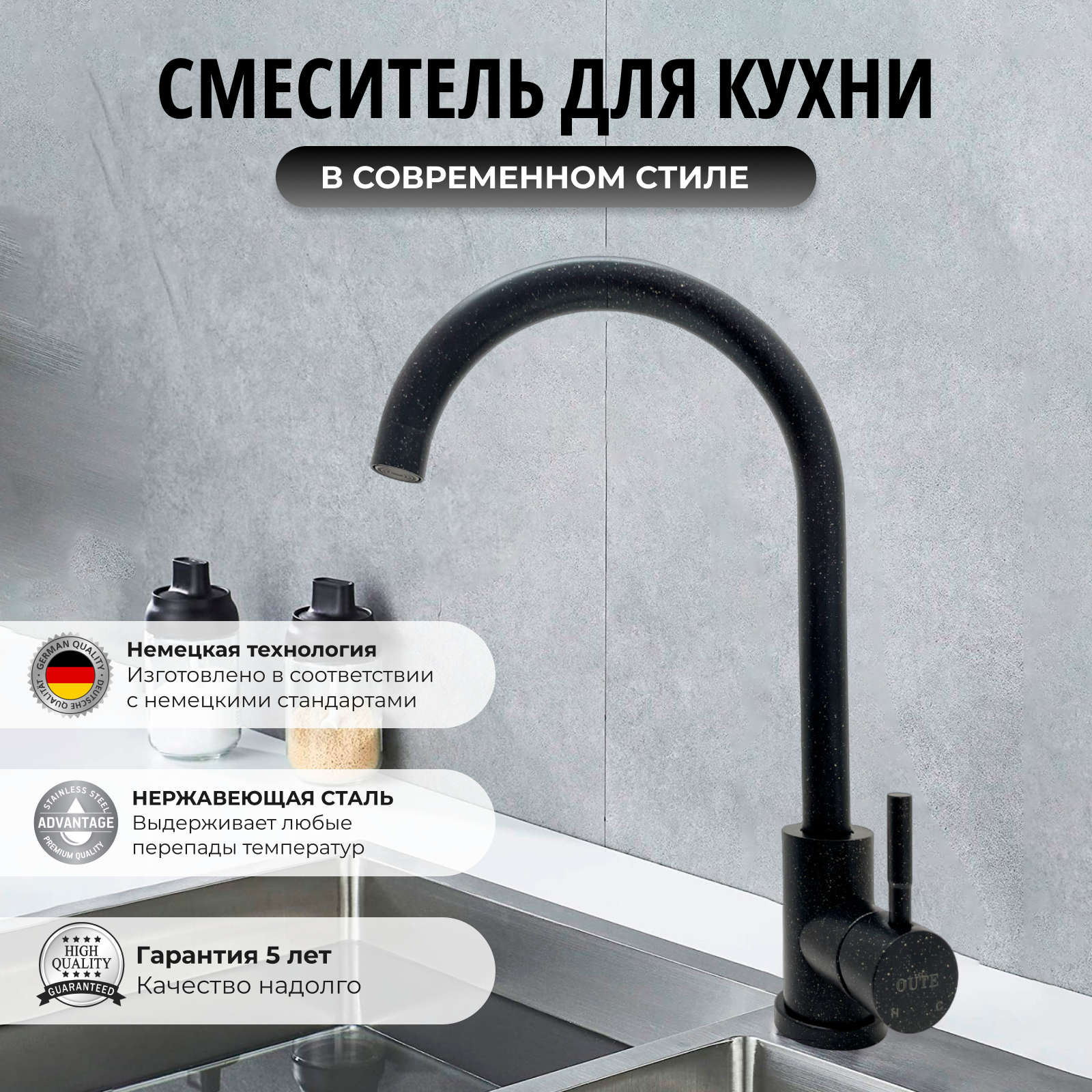 СохранитьСмеситель для кухни черный/ Черный с золотым кроплением/ Смеситель для кухни с поворотным изливом/ Кухонный смеситель/ Нержавеющая сталь. интересное: