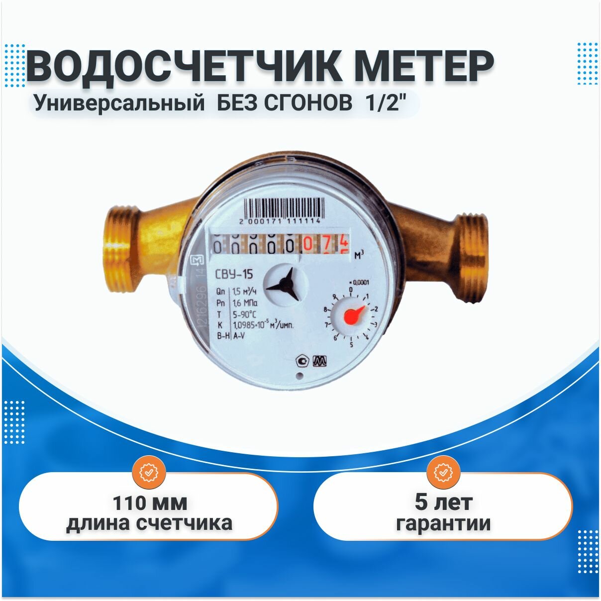Купить Счетчик для воды (холодной и горячей) метер универсальный без сгонов 1/2"