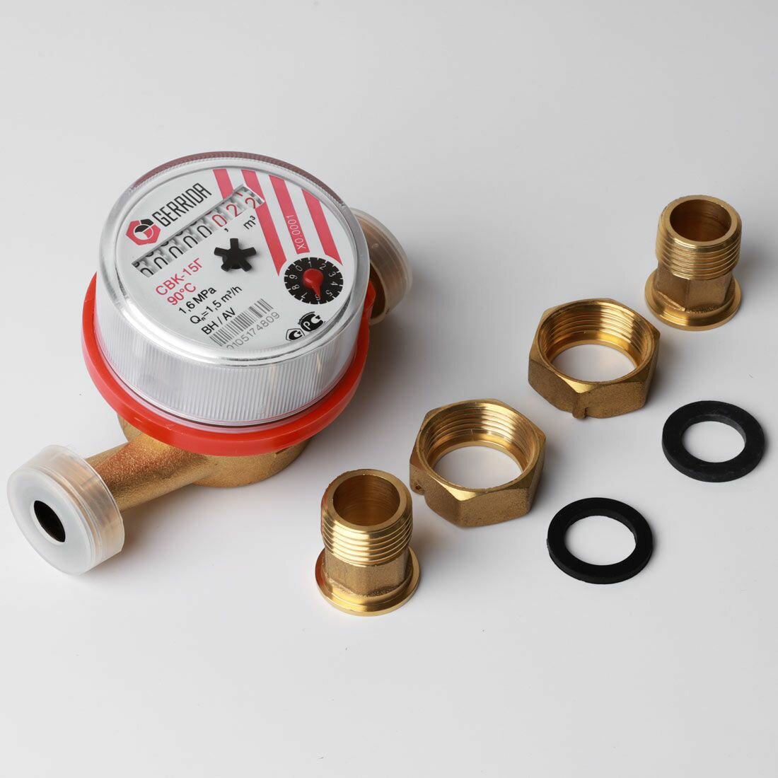 Купить Счетчик воды универсальный Геррида СВК-15Г 110мм (Gerrida) с монтажным комплектом / Поверка Февраль 2024 - 4 шт.