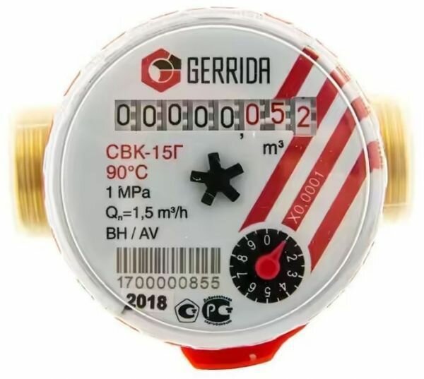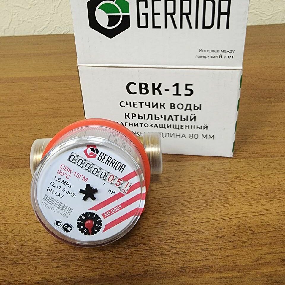 Счетчик воды Универсальный Геррида СВК-15Г, длинна 80 мм с монтажным комплектом / Gerrida, Поверка Февраль 2025 (комплект 2шт.) интересное: