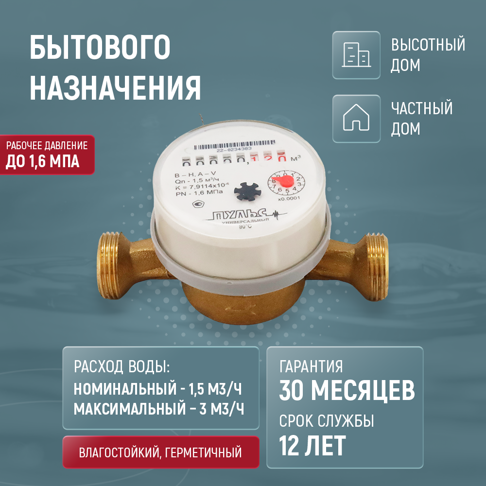 Ниже Вы можете прочитать отзывы на Счетчики воды универсальные пульс 15У-110, комплект из 4 шт., без кмч, ознакомится с подробными характеристиками, посмотреть интересные обзоры и фотографии на Счетчики воды универсальные пульс 15У-110, комплект из 4 шт., без кмч.