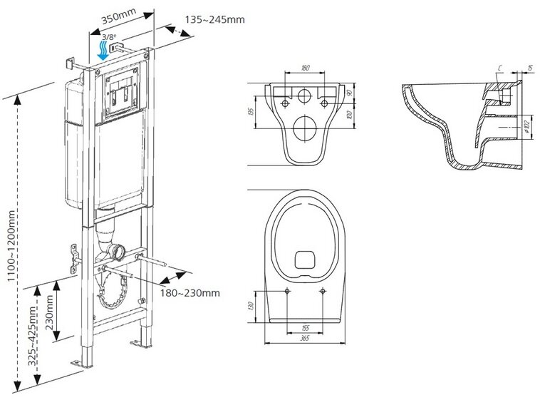 | Комплектация | бачок / инсталляция / монтажная рама / монтажный набор креплений / панель смыва / сиденье |