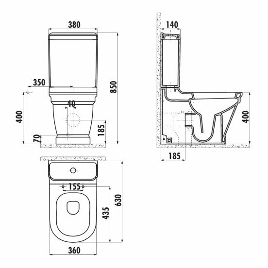 | Подвод воды | сзади бачка |
