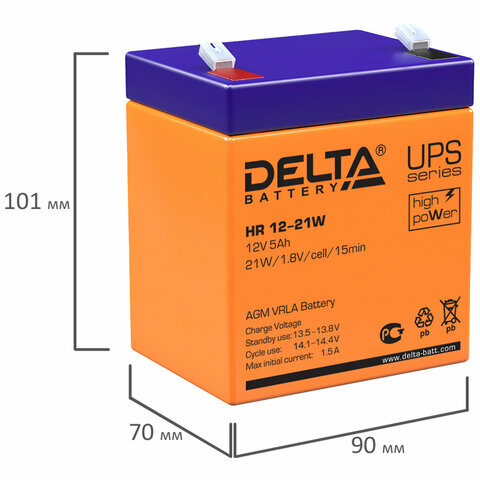 Аккумуляторная батарея для ИБП любых торговых марок, 12 В, 5 Ач, 90х70х101 мм, DELTA, HR 12-21 W интересное: