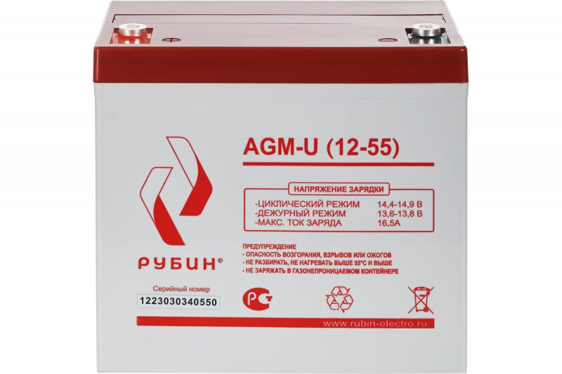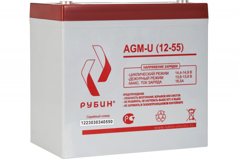 Аккумуляторная батарея Рубин Аккумуляторная батарея Рубин 12V 55Ah AGM (15.7kg) интересное: