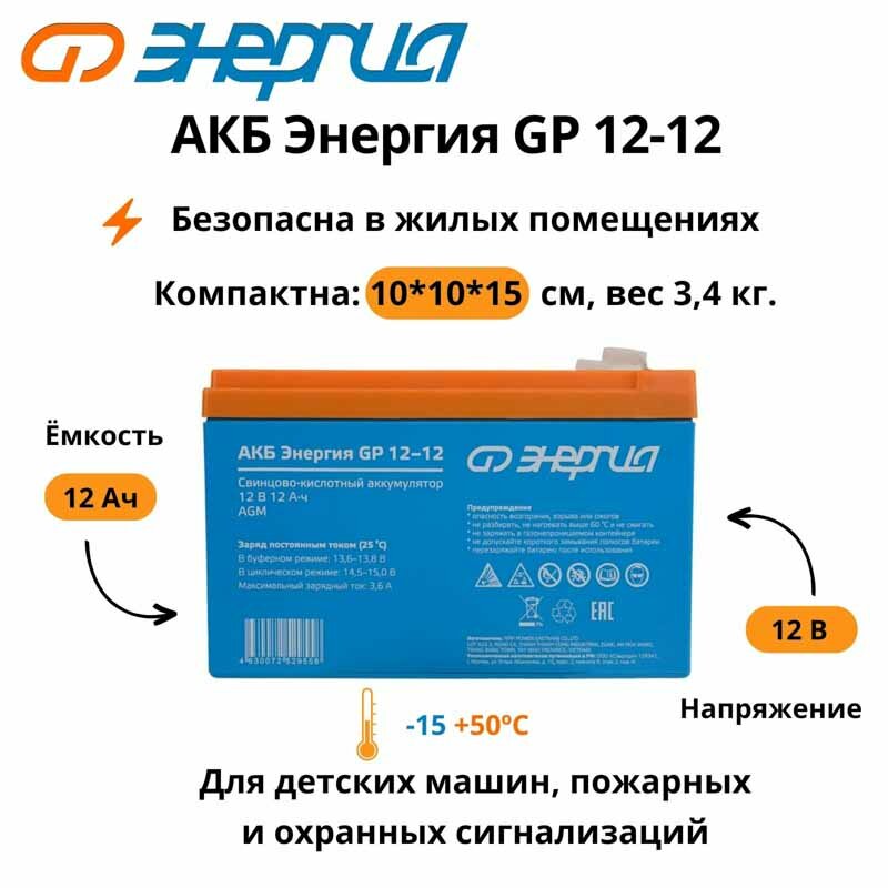 Аккумулятор для ИБП Энергия АКБ GP 12-12 (тип AGM) интересное: