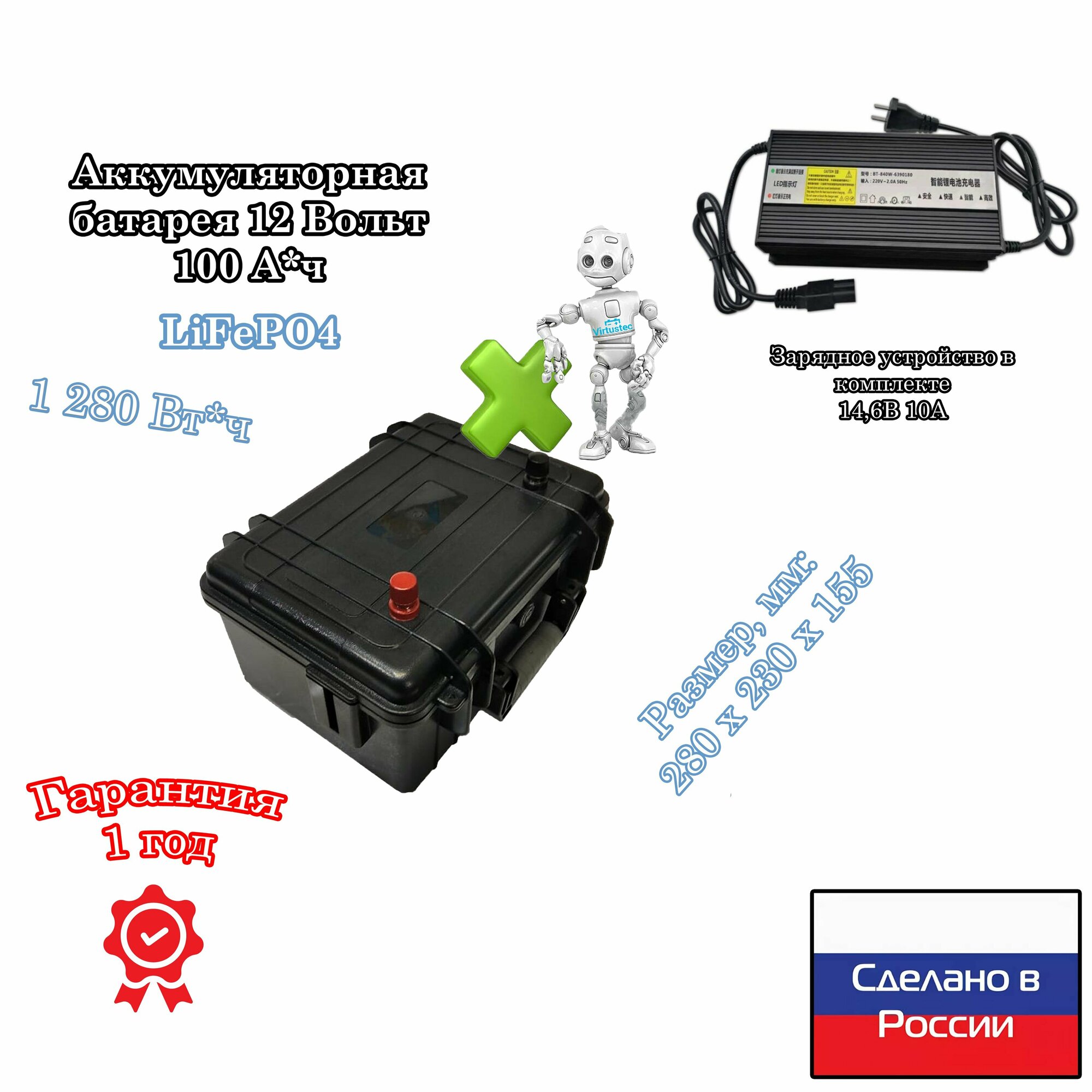 Ниже Вы можете прочитать отзывы на Аккумуляторная батарея 12 вольт 100 А*ч LiFePO4 (14,6В) в кейсе, ознакомится с подробными характеристиками, посмотреть интересные обзоры и фотографии на Аккумуляторная батарея 12 вольт 100 А*ч LiFePO4 (14,6В) в кейсе.