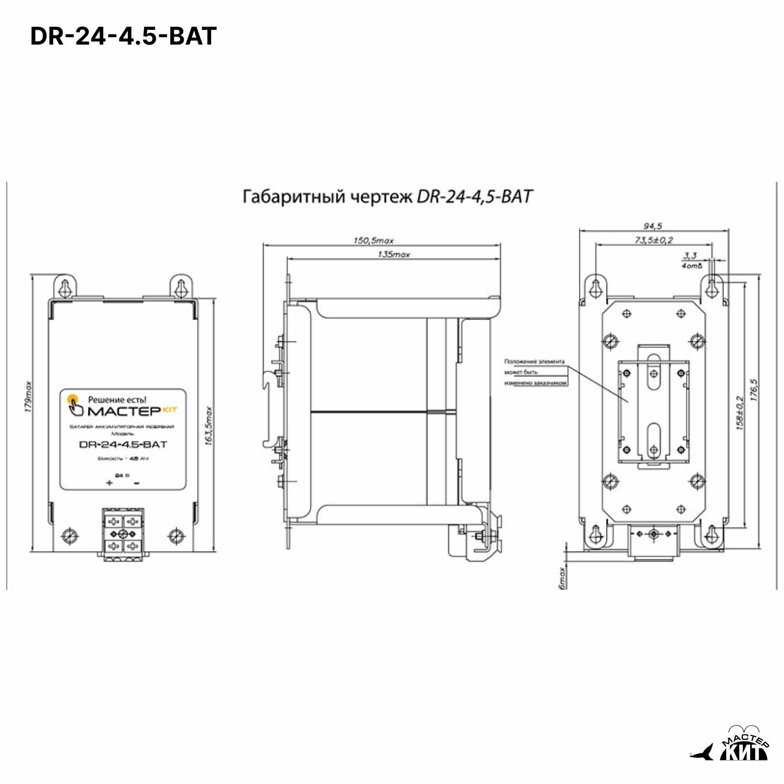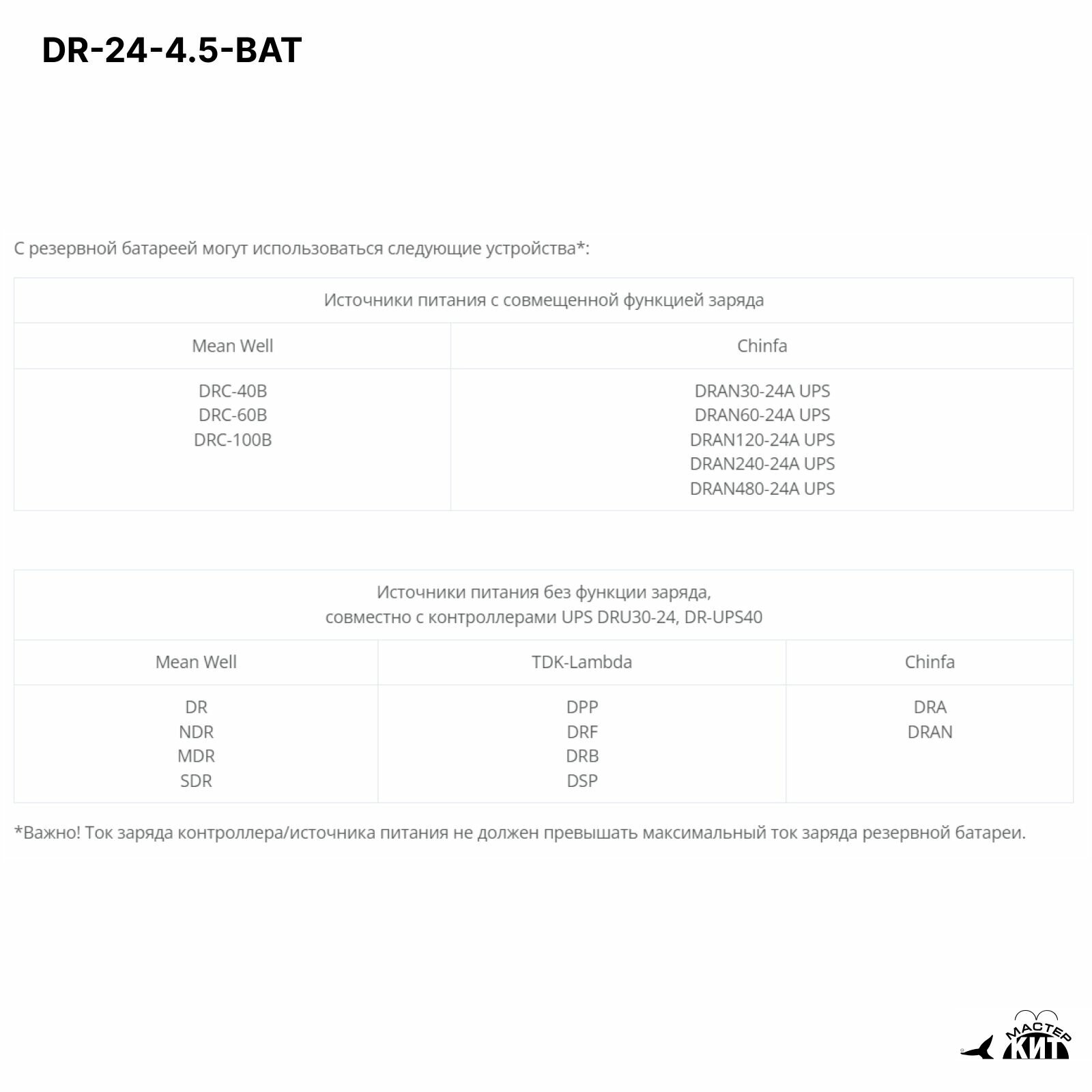 Резервная аккумуляторная батарея 24В, 4.5 Ач, DR-24-4.5-BAT Мастер Кит интересное: