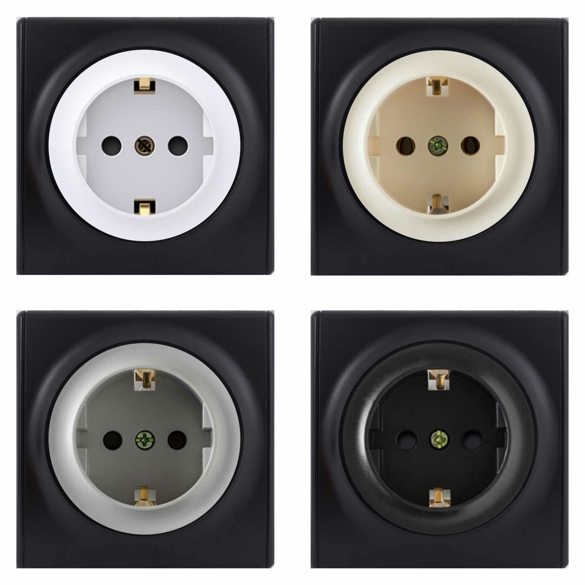Розетка OneKeyElectro с крышкой, с заземлением, винтовые контакты, цвет черный