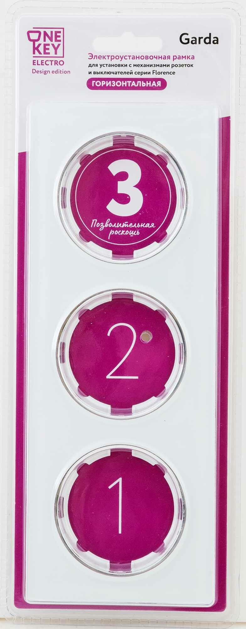 Рамка стеклянная OneKeyElectro Garda (для серии Florence) 3 поста, горизонтальная, цвет белый