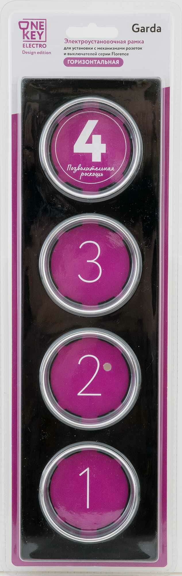 Рамка стеклянная OneKeyElectro Garda (для серии Florence) 4 поста, горизонтальная, цвет серый