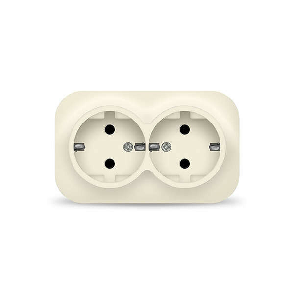 Розетка двухместная серия "IONICH", с заземлением, открытой установки, 16А, 220В, слоновая кость (еврослот) IONICH 1428 (3шт)