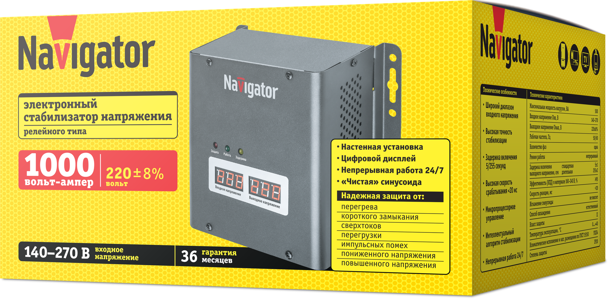 Стабилизатор напряжения настенный Navigator 61 775 NVR-RW1-1000, 1000ВА интересное: