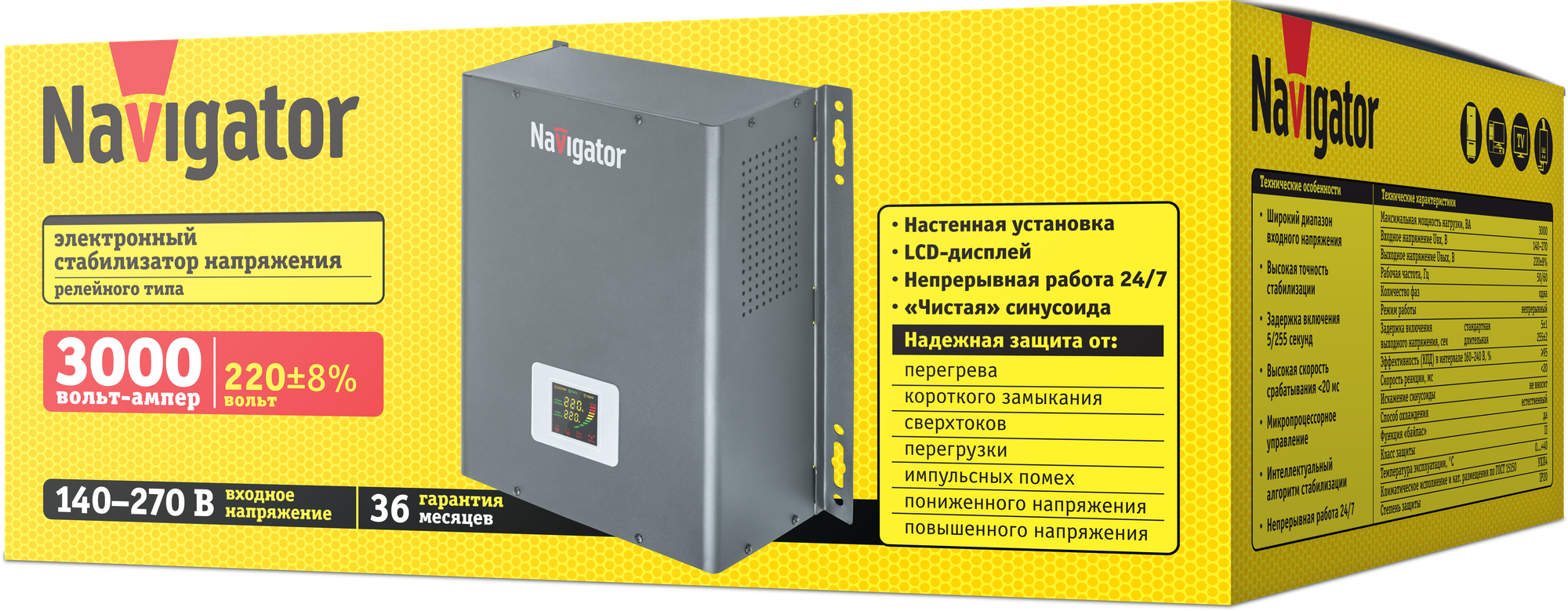 Стабилизатор напряжения настенный Navigator 61 778 NVR-RW1-3000, 3000ВА интересное: