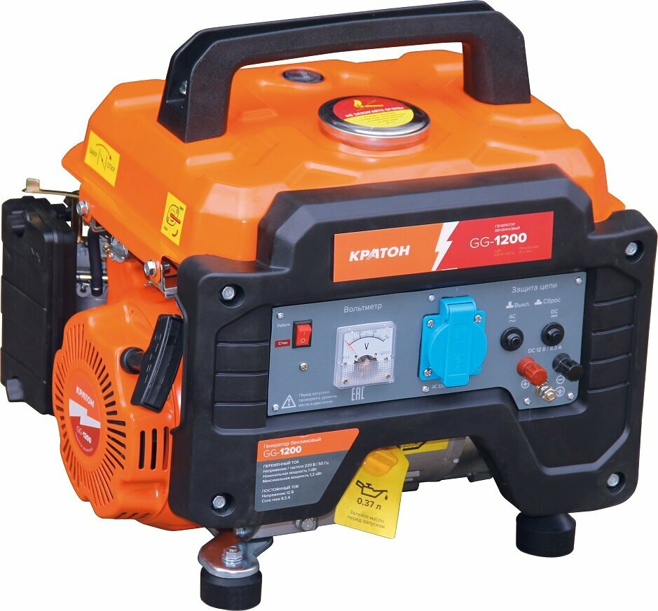 Генератор бензиновый Кратон GG-1200 мощность 1,2 кВт, однофазный интересное:
