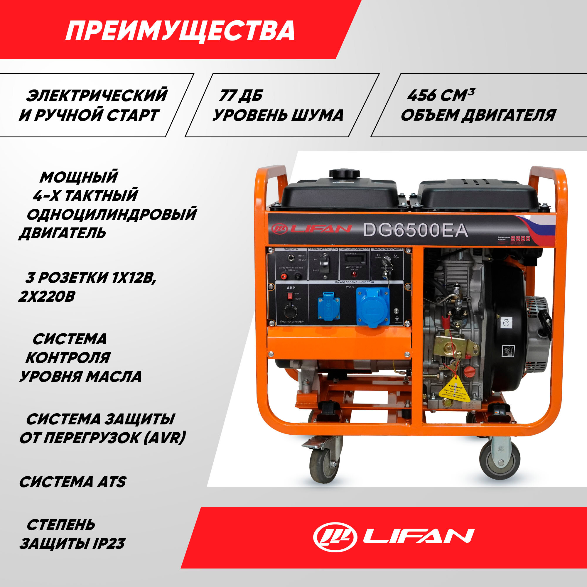 Генератор дизельный Lifan DG6500EA (5.5кВт, 220В, 15л, одна фаза) интересное:
