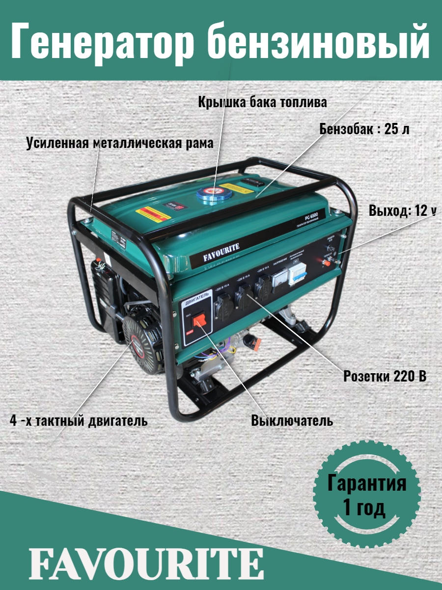 Генератор бензиновый 6,5 кВт, 13л.с. FAVOURITE интересное: