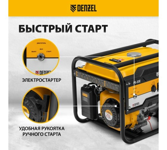 Купить DENZEL 94537 Генератор бензиновый PS-33E, 3,3 кВт, 230В, 15 л, электростартер Denzel Denzel 94537