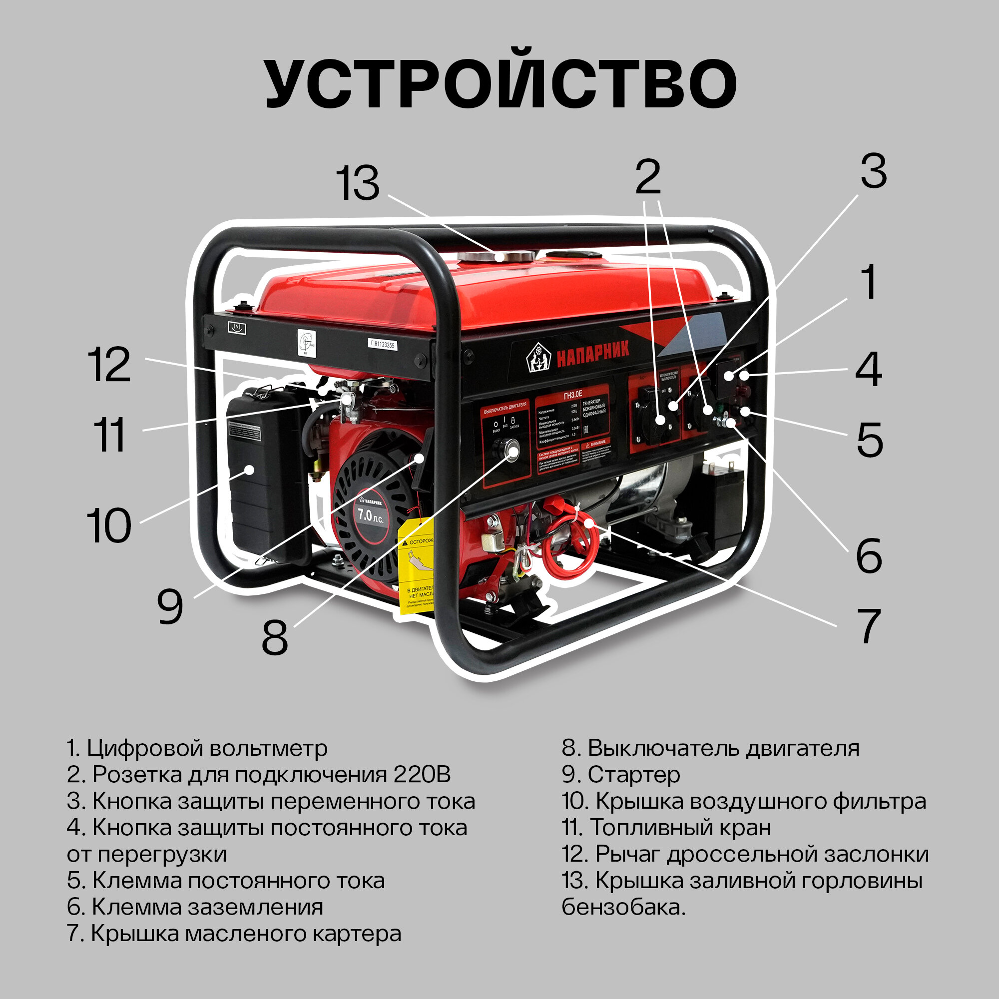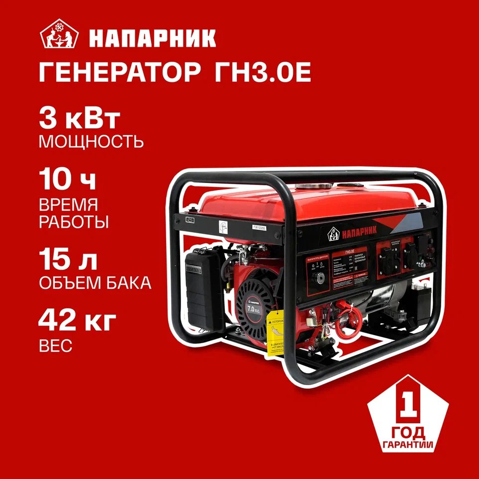 Генератор бензиновый однофазный "Напарник" ГН 3,0 Е, 3 кВт, 220 В, 15 л интересное: