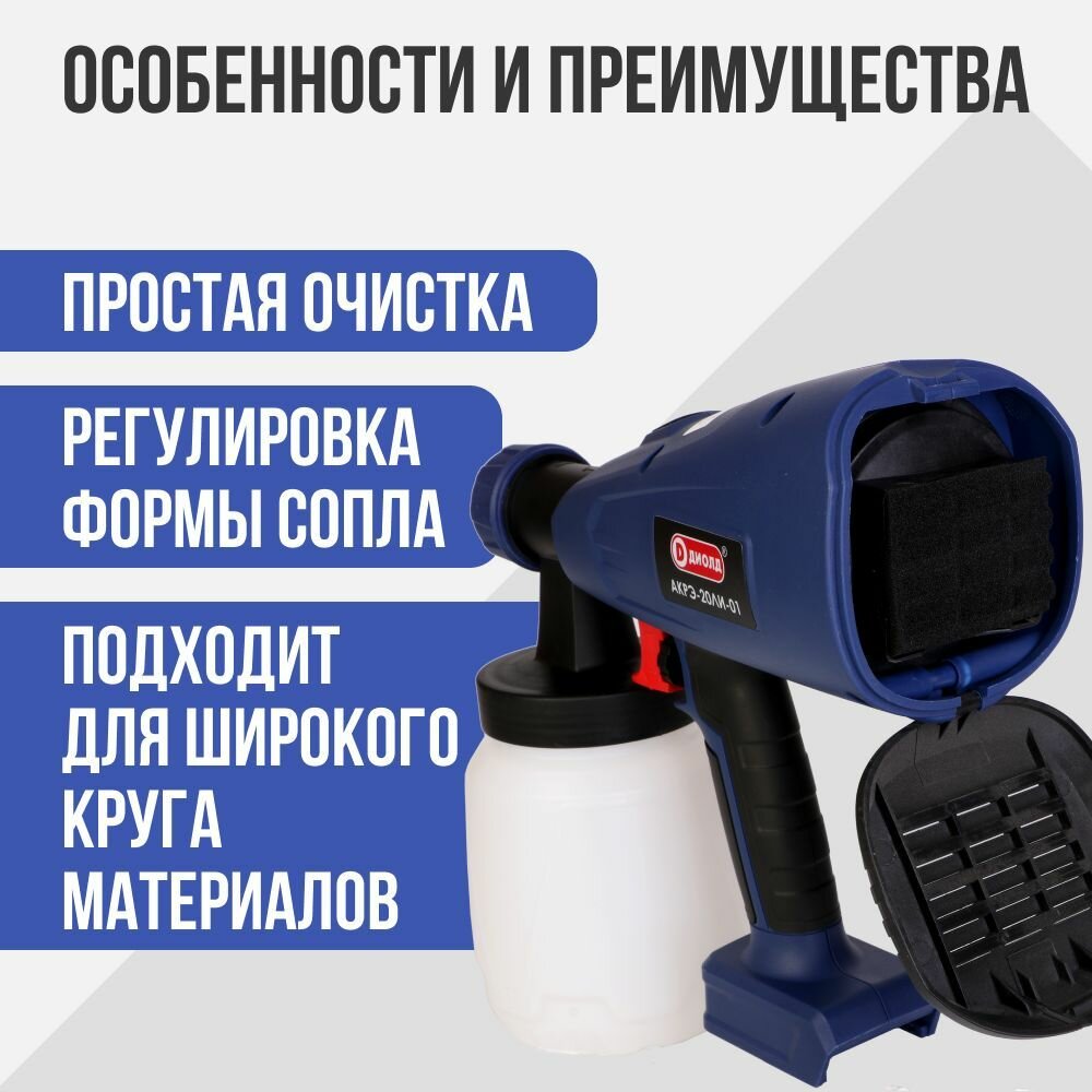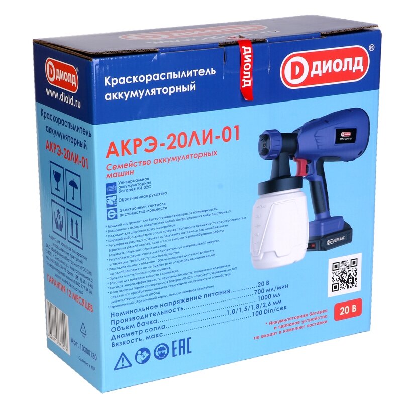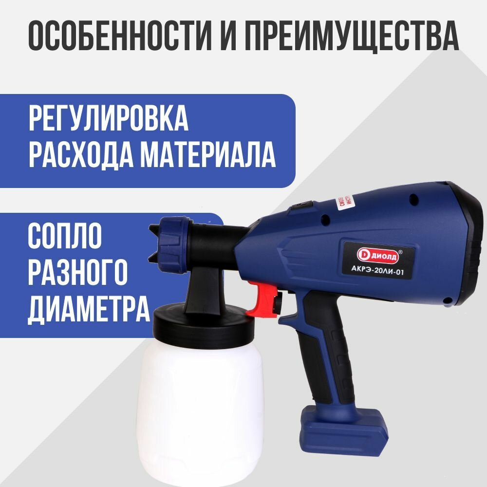 Краскораспылитель/Краскопульт аккумуляторный диолд АКРЭ-20ЛИ-01 Диолд /1000 мл/ 700 г/час / 100 DIN без АКБ, без ЗУ интересное: