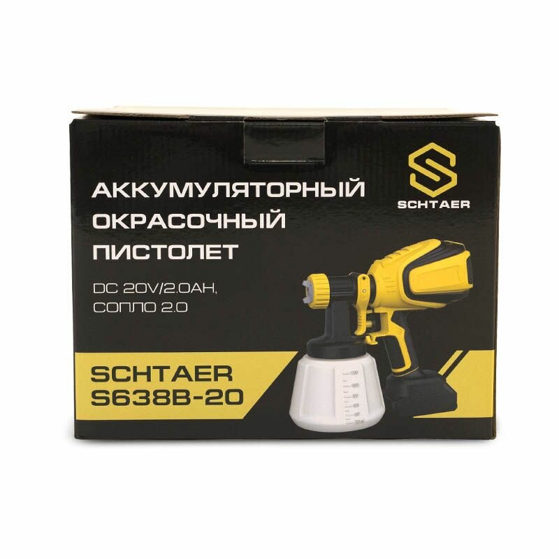 Купить Schtaer S638B-20 аккумуляторный окрасочный пистолет, DC 20V/2.0Ah, сопло 2.0