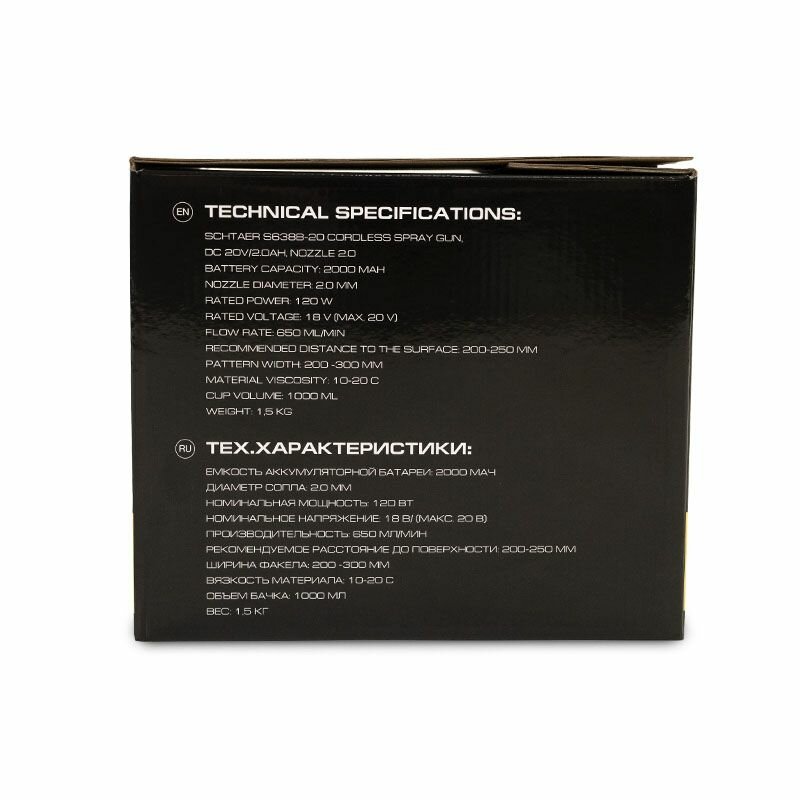 Аккумуляторный окрасочный пистолет SCHTAER S638B-20