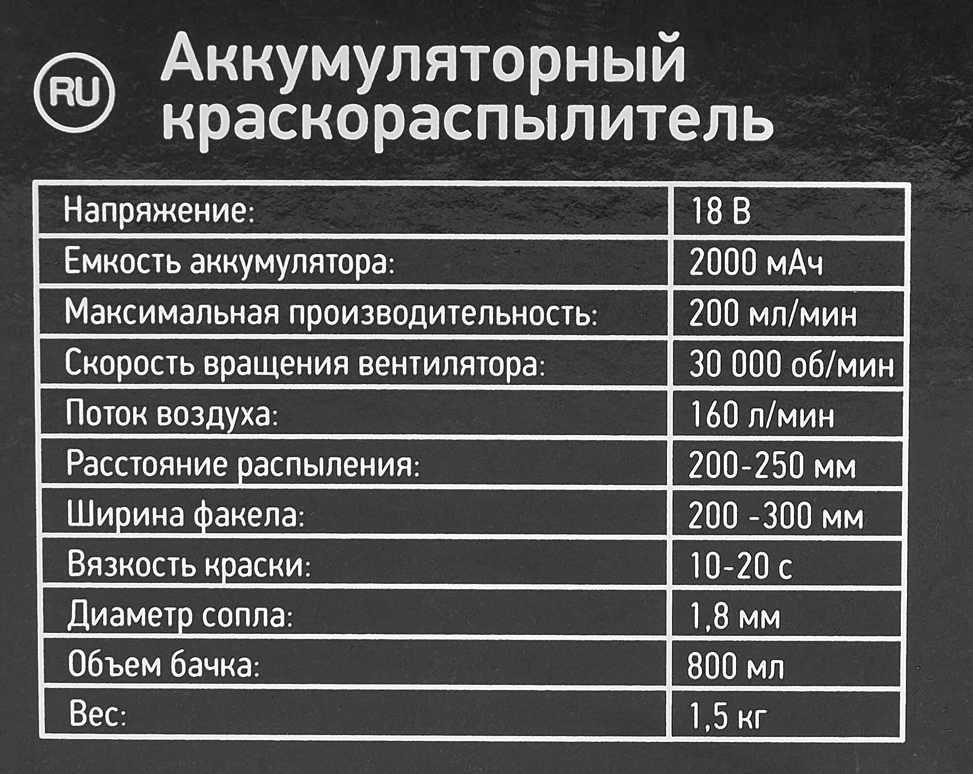 | Распыляемый материал | краска |