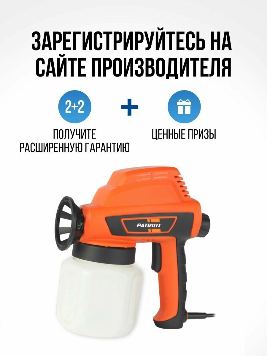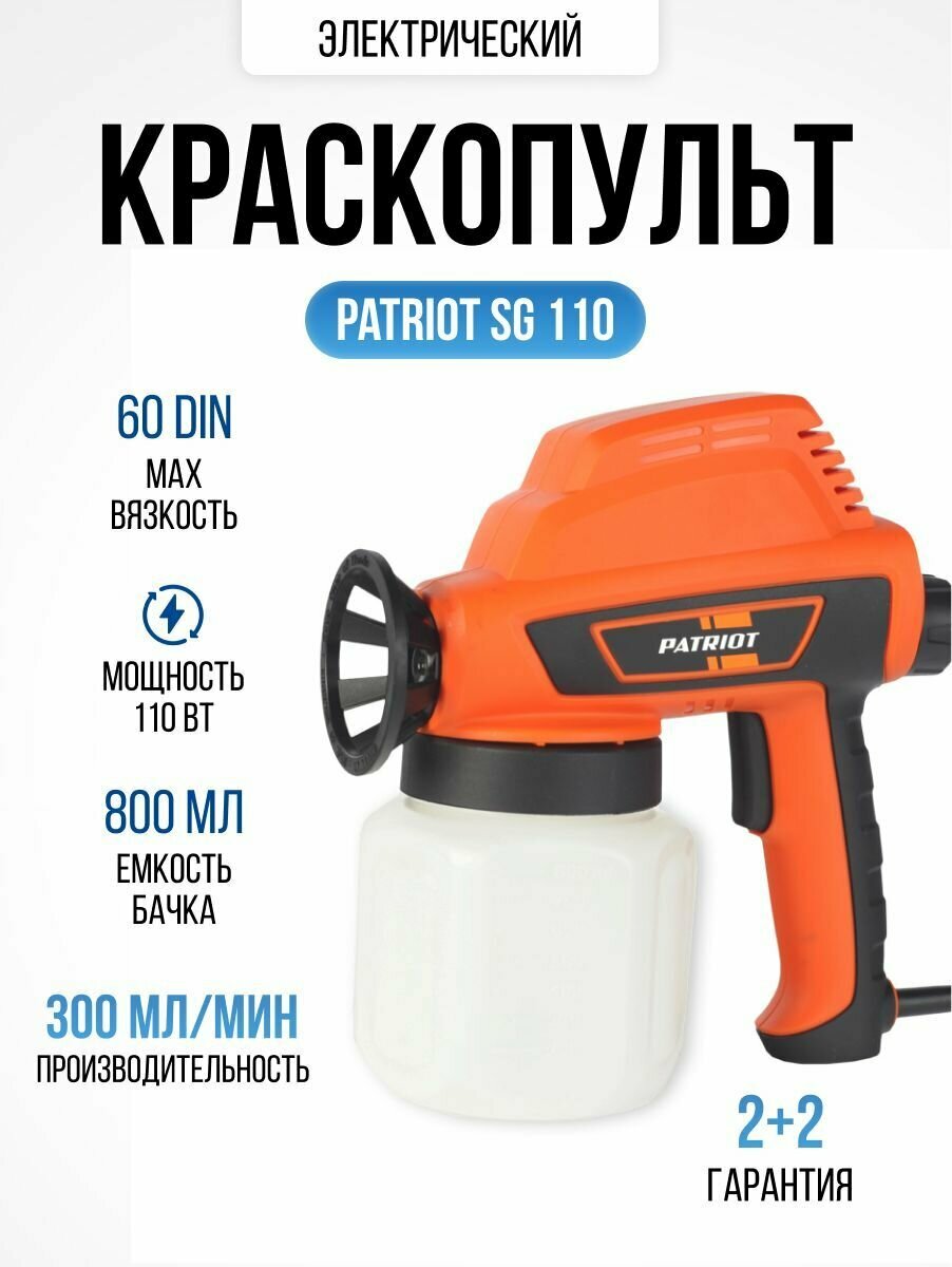 Краскопульт электрический Patriot SG 110, ручной воздушный инструмент для краски 110 Вт, 800 мл