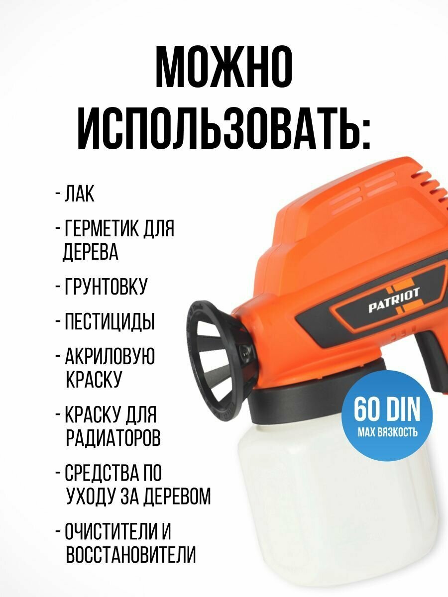 Краскопульт электрический PATRIOT SG 110 / гибкая насадка / 110 Вт / вязкость 60 DIN/сек / расход 300 мл/мин / резервуар 800 мл