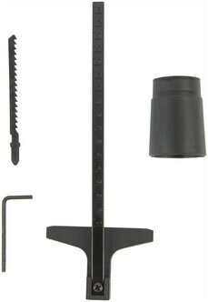 | Комплектация | электролобзик, пильное полотно по дереву, параллельный упор, шестигранный ключ (для регулировки наклона подошвы), адаптер для подключения пылесоса, инструкция, упаковка |