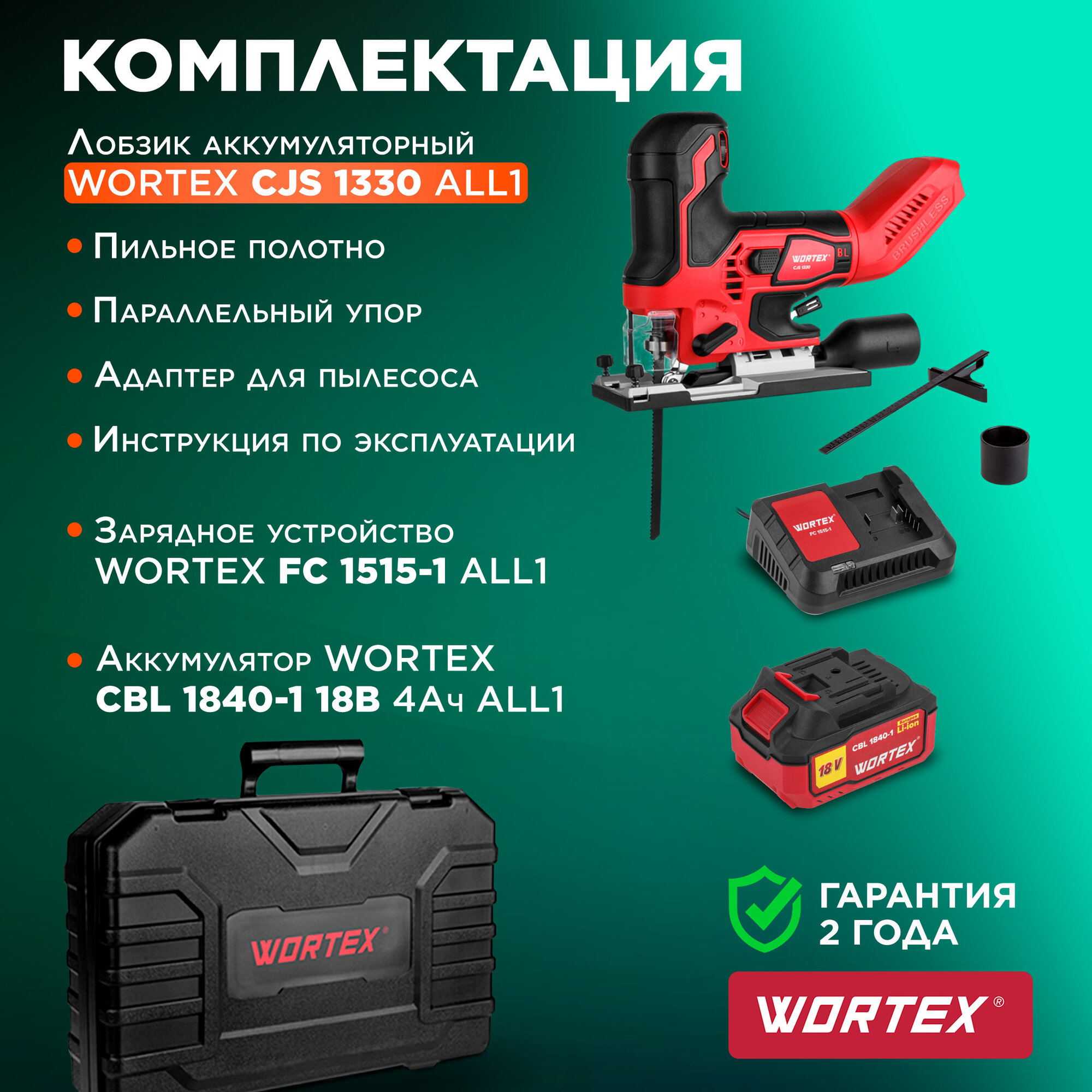 Аккумуляторный лобзик WORTEX CJS 1330 ALL1 мега акция бесщёт, 18В, 800 - 3800 ход/мин, пропил до 135 (1325401)