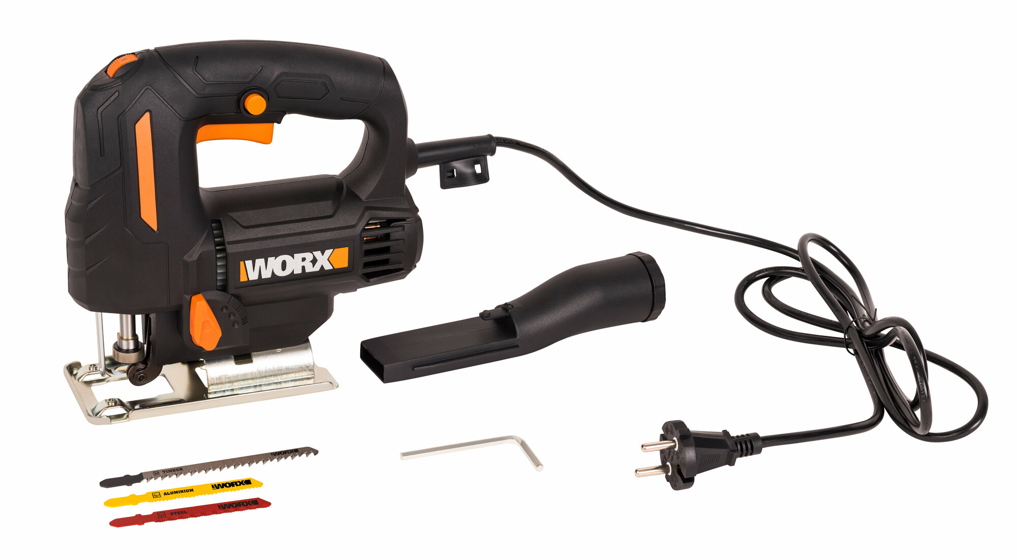 | Комплектация | Лобзик электрический WORX WX463; 1 шт. Пилка по металлу; 1 шт. Пилка по дереву; 1 шт. Пилка по алюминию; 1 шт. Ключ-шестигранник; Коробка |