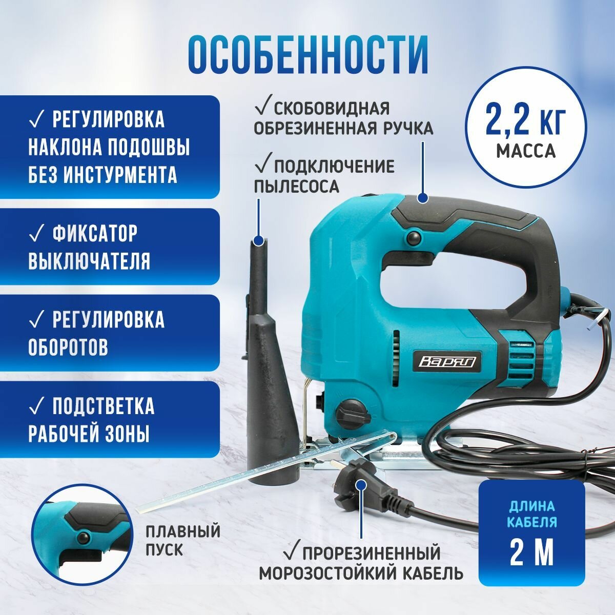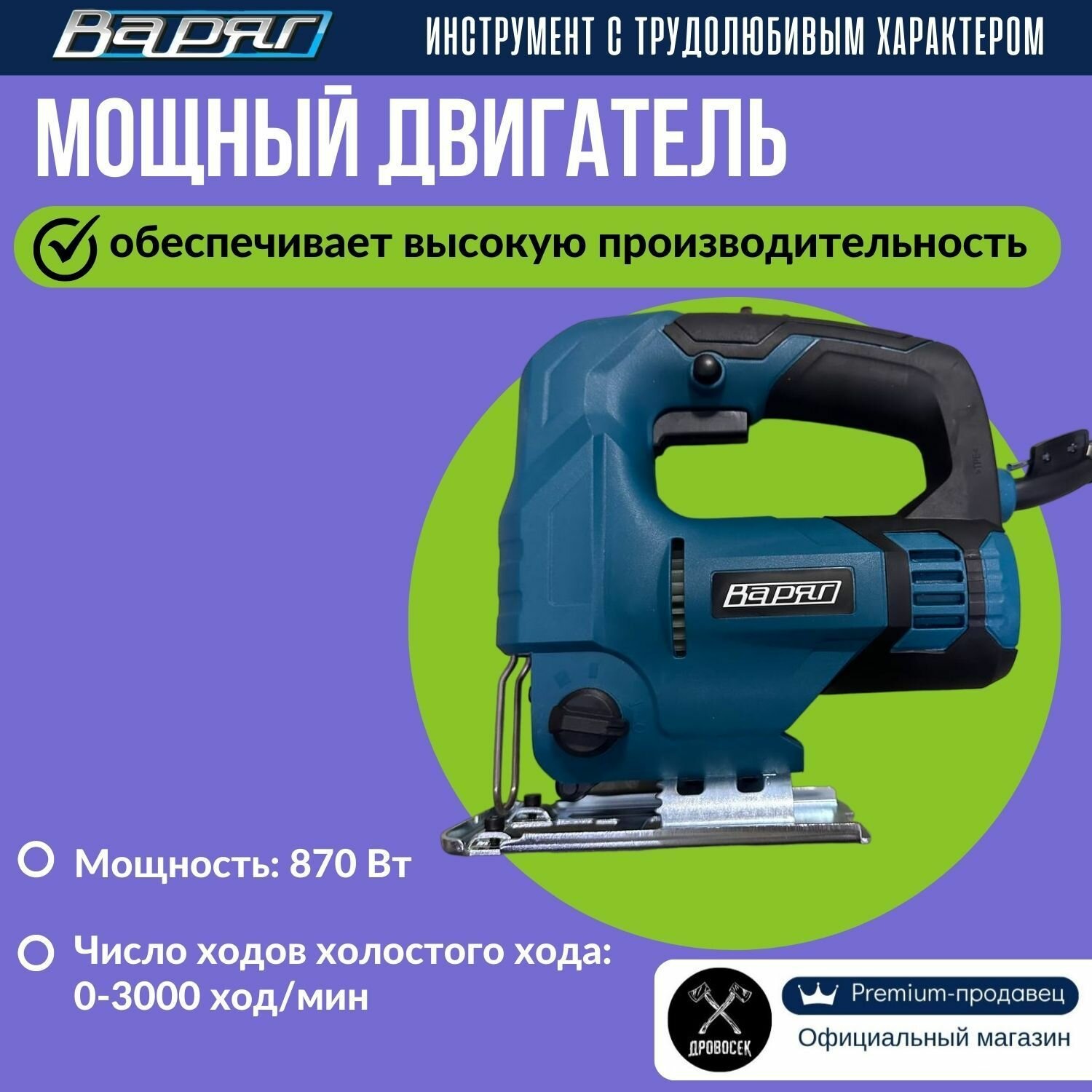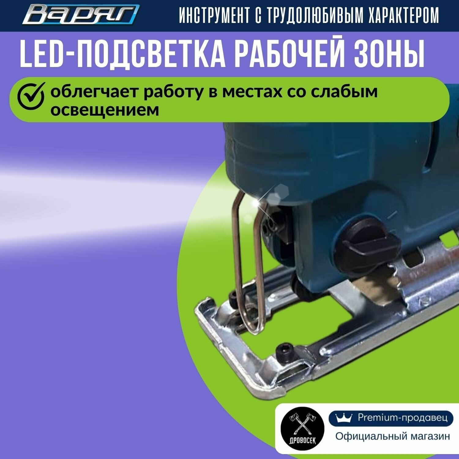 Лобзик электрический сетевой варяг ЛЭ-870 / электролобзик с регулировкой скорости, маятниковым режимом и LED-подсветкой, в подарок - набор пилок "Ассорти" интересное: