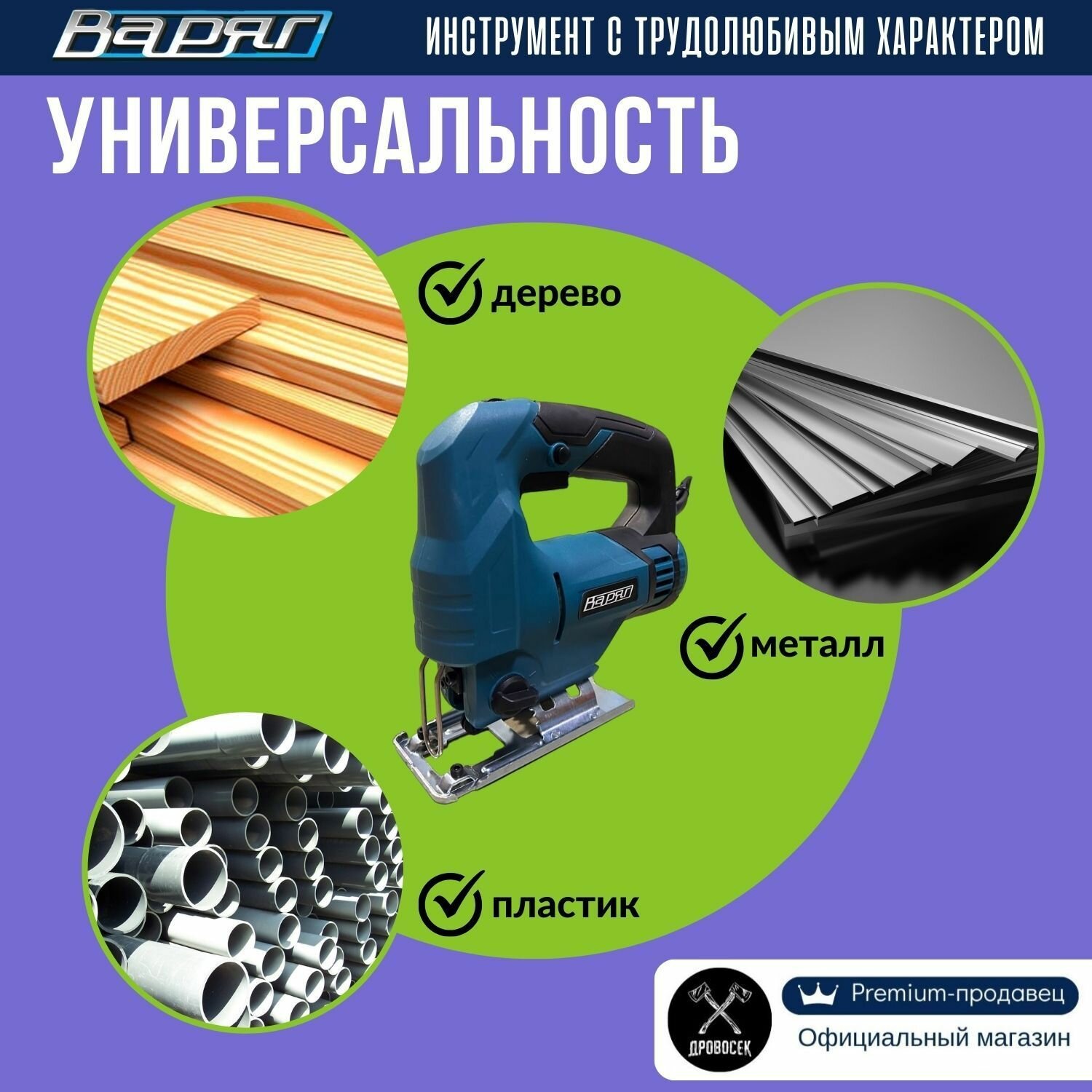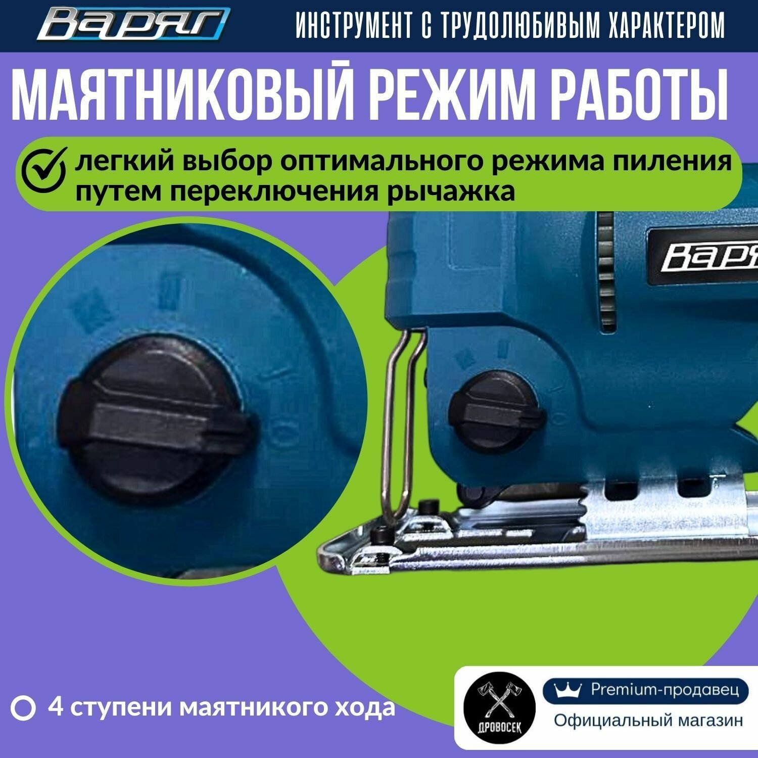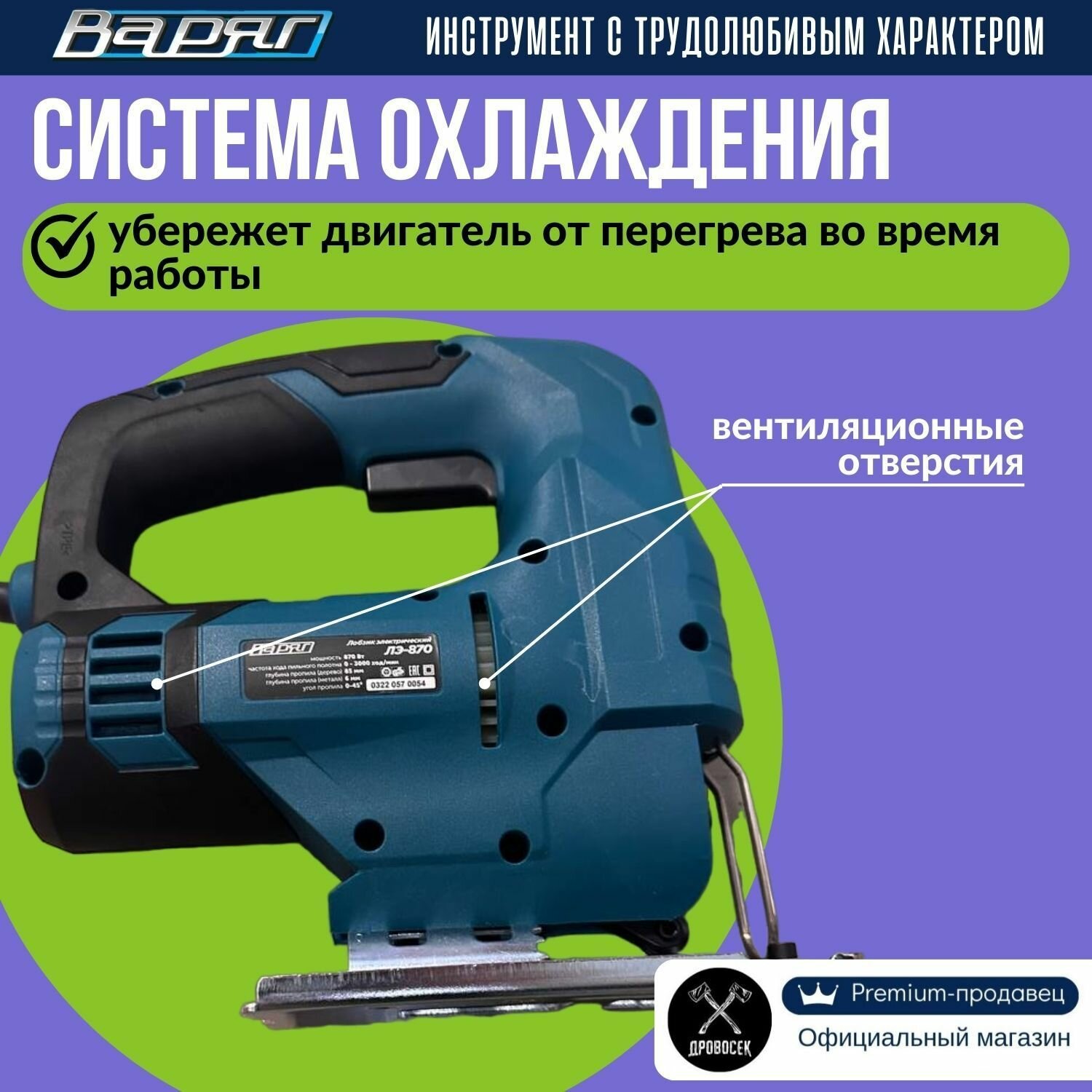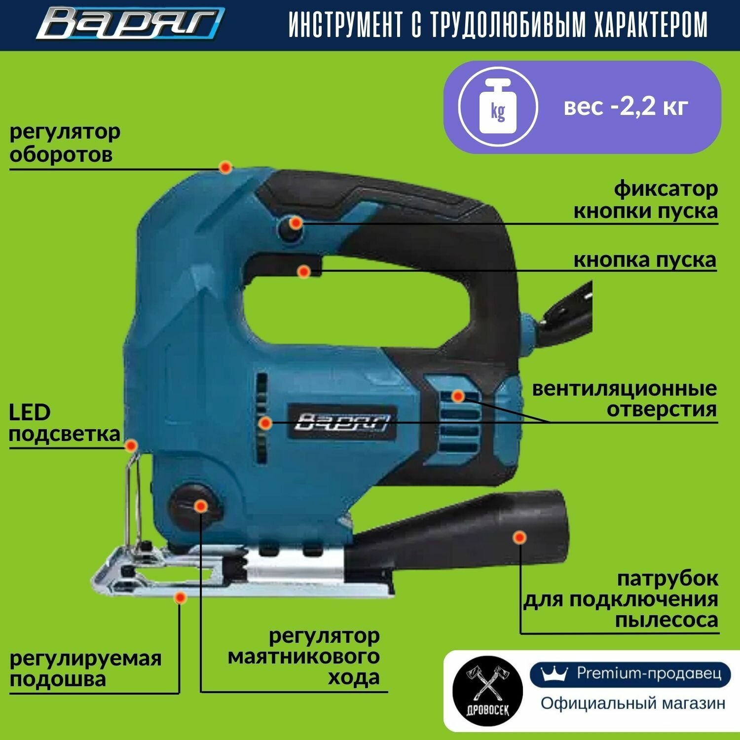 Лобзик электрический сетевой варяг ЛЭ-870 / электролобзик с регулировкой скорости, маятниковым режимом и LED-подсветкой, в подарок - набор пилок "Ассорти" интересное: