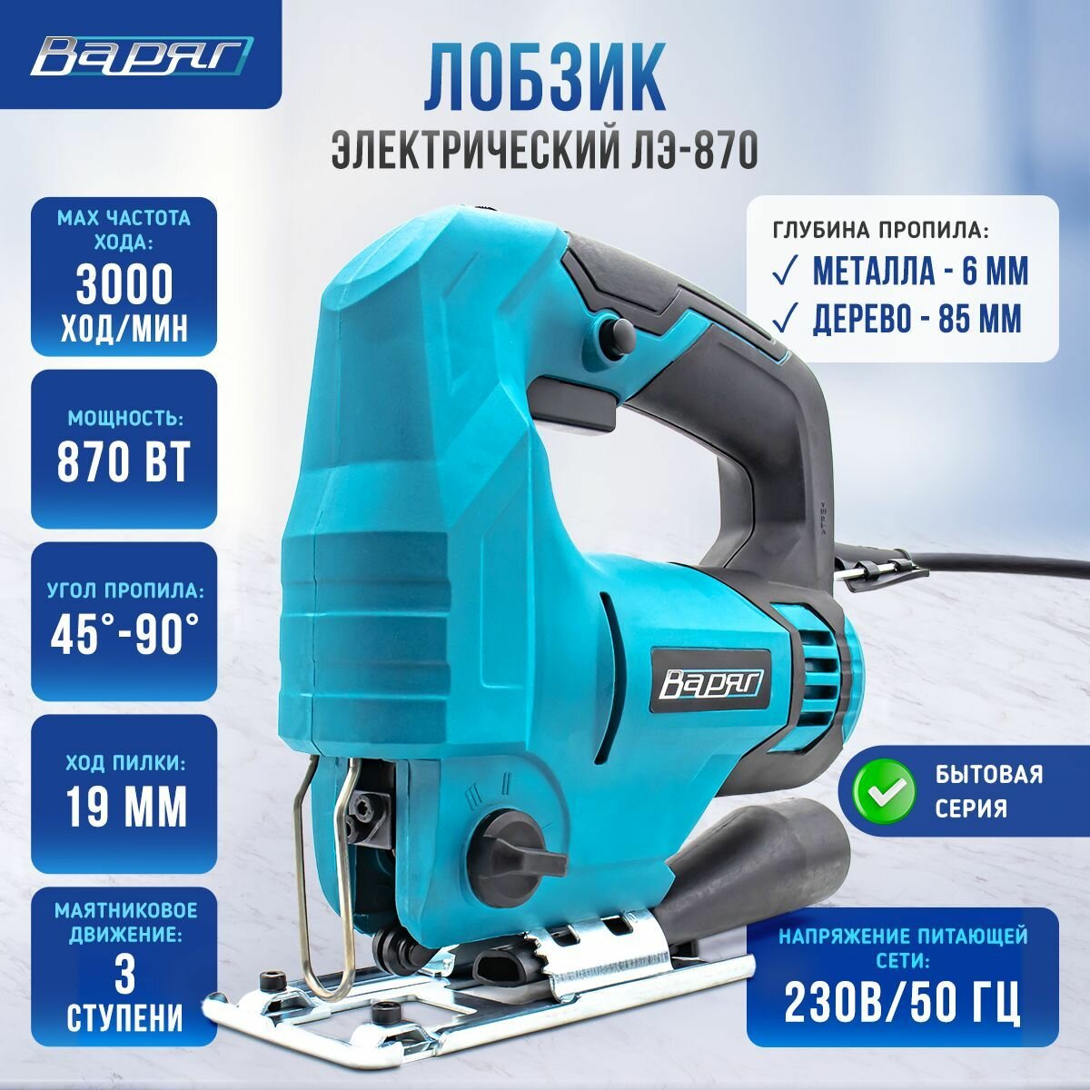 Ниже Вы можете прочитать отзывы на Лобзик электрический сетевой варяг ЛЭ-870 / электролобзик с регулировкой скорости, маятниковым режимом и LED-подсветкой, в подарок - набор пилок "Ассорти", ознакомится с подробными характеристиками, посмотреть интересные обзоры и фотографии на Лобзик электрический сетевой варяг ЛЭ-870 / электролобзик с регулировкой скорости, маятниковым режимом и LED-подсветкой, в подарок - набор пилок "Ассорти".